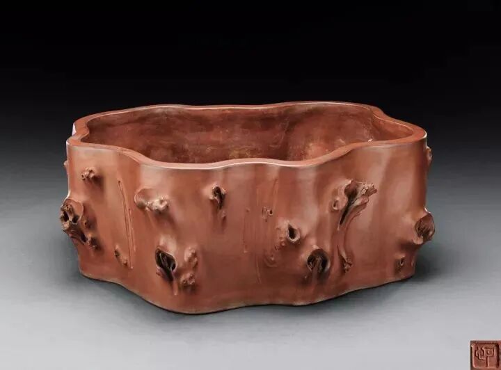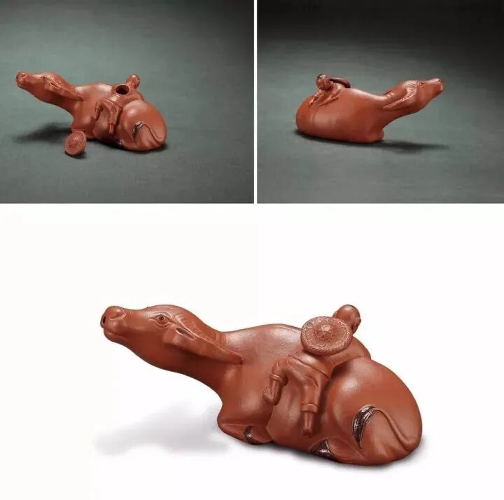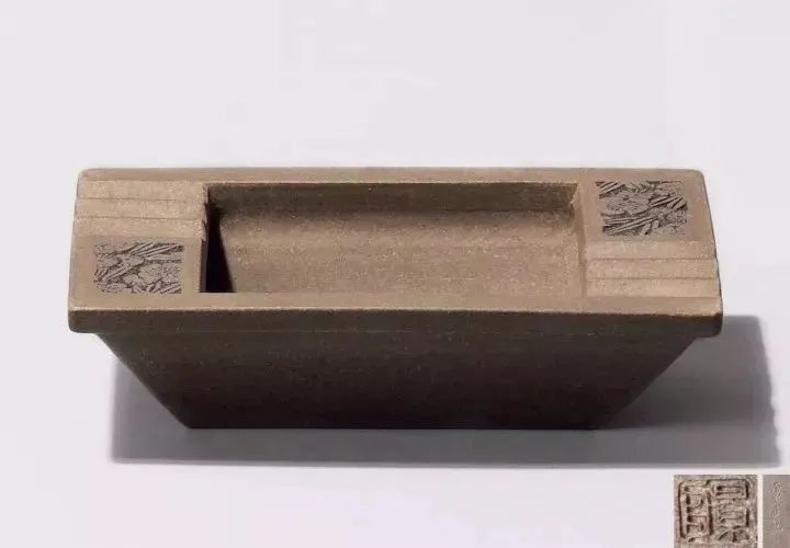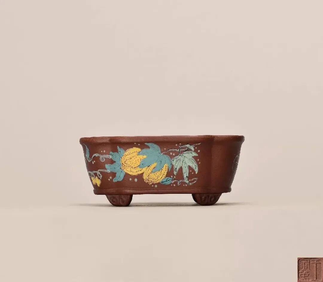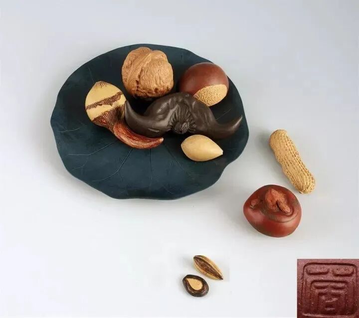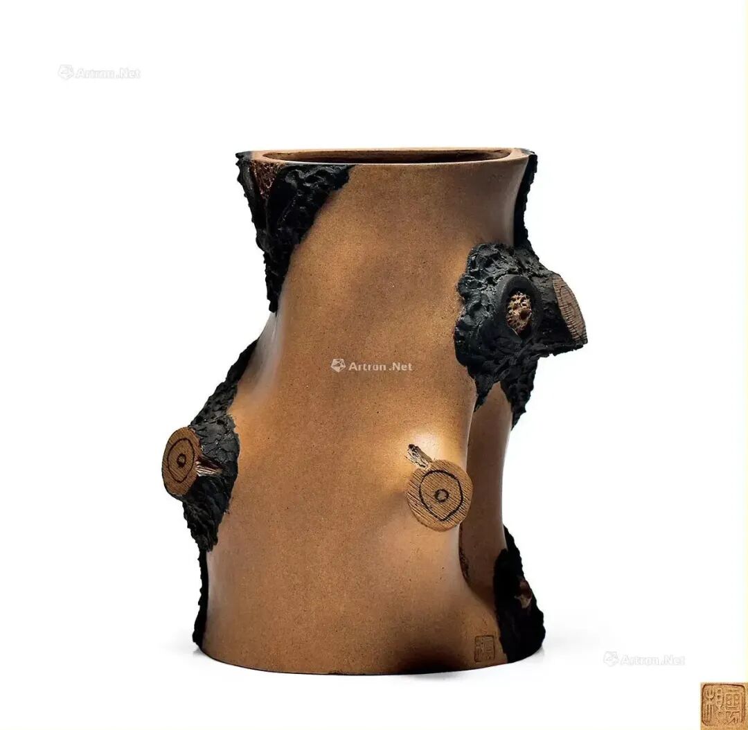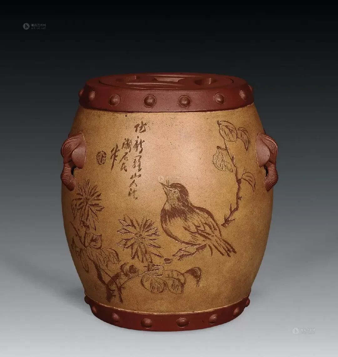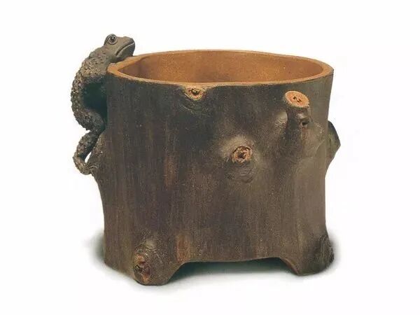 顾景舟 ▲莲蓬水盂 ▲蝠纹水盂 ▲ 仿邵文金紫砂方洗原配珊瑚柄勺 ▲水注 ▲“一勺之水多”水注 ▲紫砂四方筒盆 ▲天鹅烟缸 ▲紫砂花盆 ▲笋形水盂 带有陈鸣远款,是顾老早期在上海仿古作品,现藏于南京博物院。 ▲天鹅樽 带有陈鸣远款,是顾老早期在上海仿古作品。 ▲陈鸣远天鹅樽原作 ▲紫泥梅桩大花盆 ▲梅桩大花插 ▲梅段笔架 裴石民 ▲田螺杯 ▲松段花盆 ▲紫泥松桩笔筒 ▲紫砂粉绿泥竹节小盆 ▲ 太湖石假山 ▲枇杷笔筒 ▲蒋蓉 一粟合作 陋室铭笔筒 ▲蛤蟆捕虫水盂 ▲蛤蟆树椿盆 ▲秋叶树蛙 ▲紫砂砚台龟摆件 ▲树蛙荷叶烟缸 ▲烟缸 ▲冬瓜枕摆件 ▲松鼠挂瓶 ▲ 牧童放牛水滴 ▲ 仿真果品 吴云根 ▲吴云根 长方翻口盆 ▲吴云根 紫砂盘 ▲吴云根制段泥树桩壁瓶 ▲吴云根制、玉屏刻段泥温酒壶 ▲吴云根款鼓钉盆 ▲吴云根 紫砂水仙盆 ▲王寅春 花盆 ▲王寅春 制搪白釉紫砂杯 (一对) ▲任淦庭 吴汉文合作人物笔筒 ▲任淦庭刻“松鹤延年”诗文大花瓶 ▲任淦庭刻花鸟茶叶罐 ▲任淦庭刻紫砂菱形杯 ▲汪祥兴 任淦庭刻回行水仙盆 (一对) ▲任淦庭书刻 石榴尊 ▲程盘根制任淦庭刻紫砂书画温酒壶 大师们的花样紫砂器,不仅展示他们高超的紫砂技艺,更展现了他们丰富的精神内核,是岁月与文化的积淀。 真正的大师不仅努力做好一把壶,哪怕一粒瓜子都做得一丝不苟。