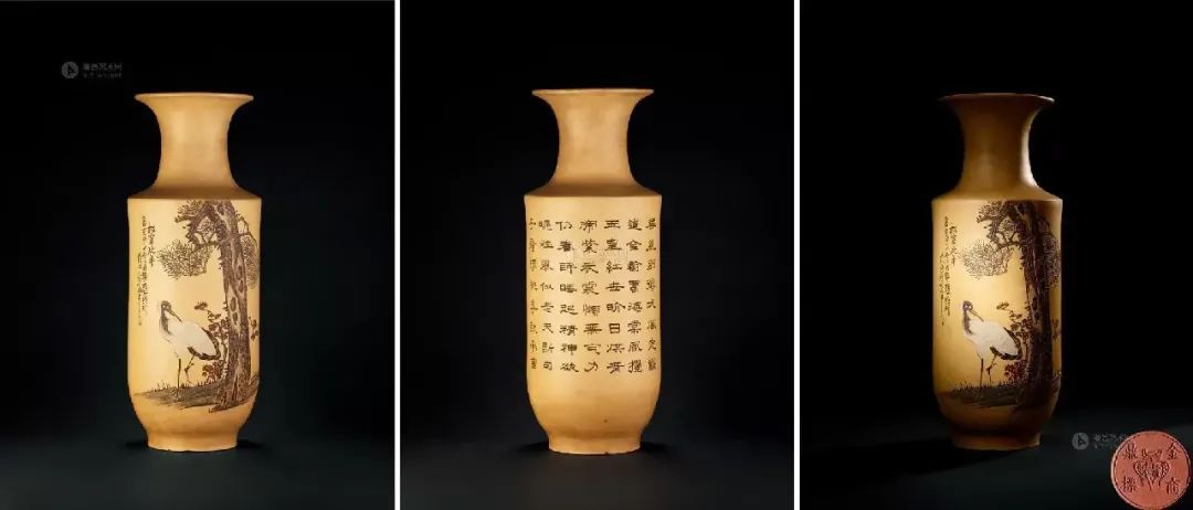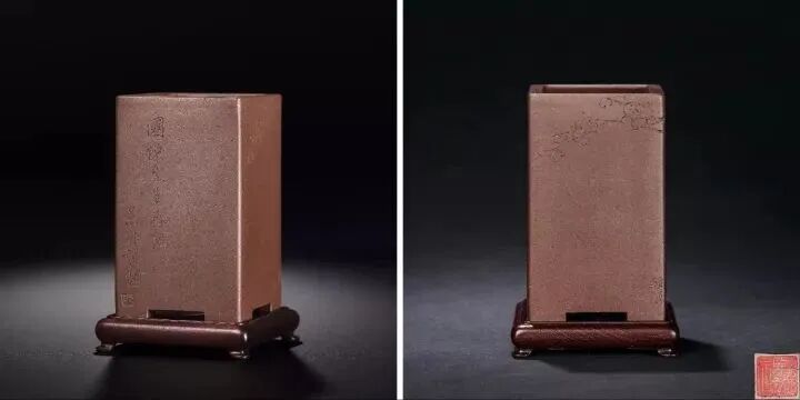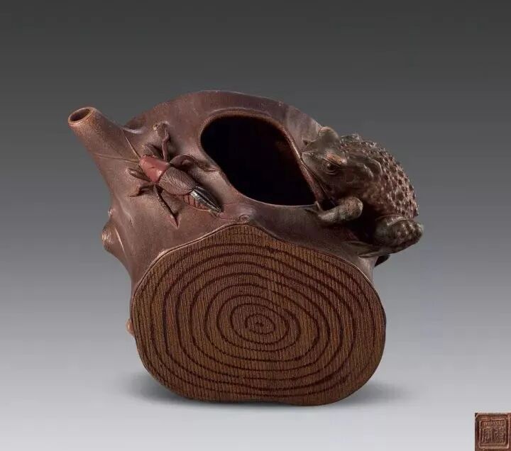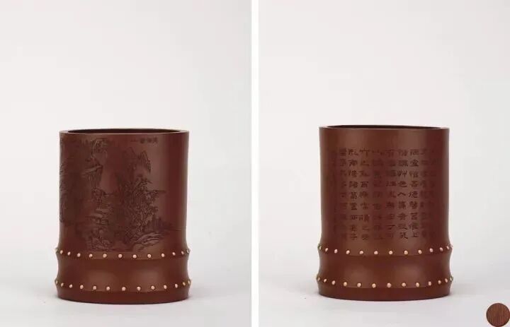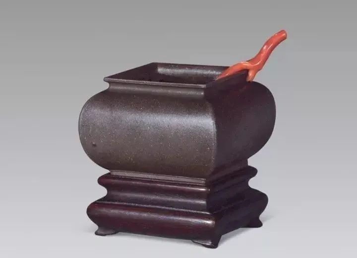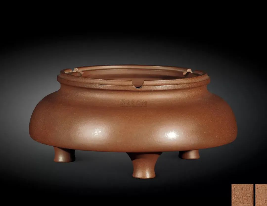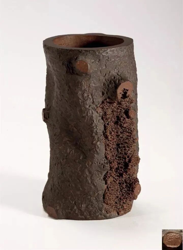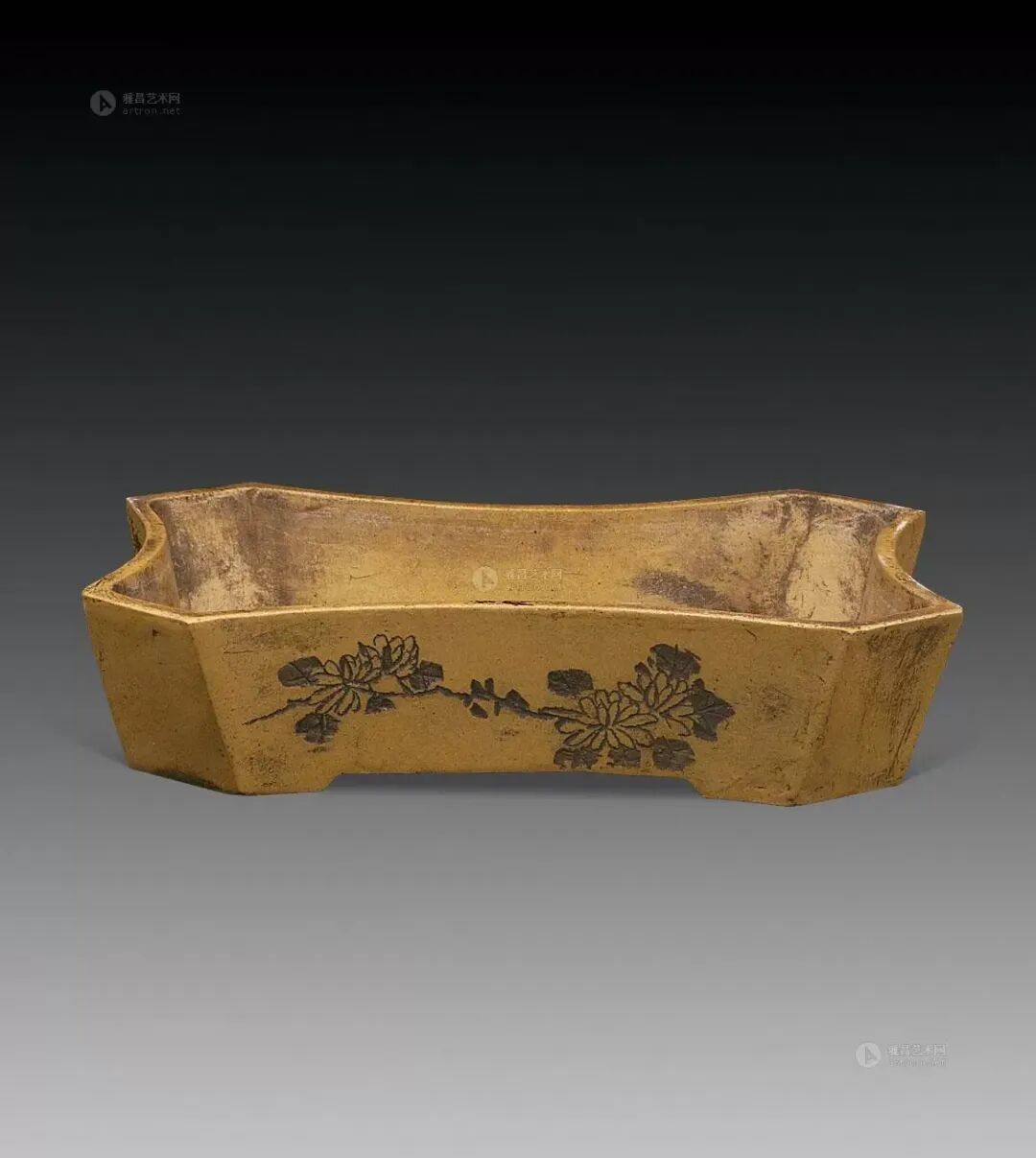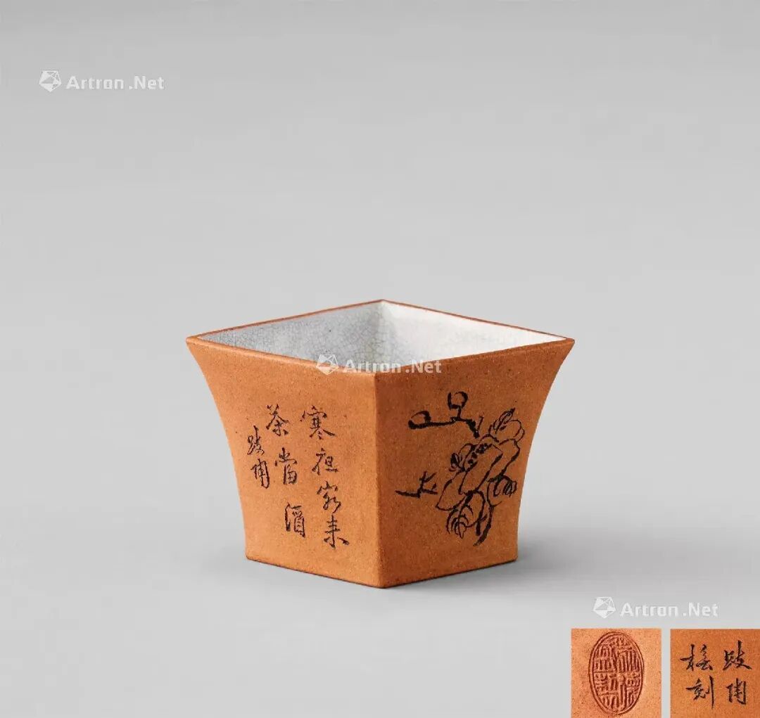 顾景舟 ▲莲蓬水盂 ▲蝠纹水盂 ▲ 仿邵文金紫砂方洗原配珊瑚柄勺 ▲水注 ▲“一勺之水多”水注 ▲紫砂四方筒盆 ▲天鹅烟缸 ▲紫砂花盆 ▲笋形水盂 带有陈鸣远款,是顾老早期在上海仿古作品,现藏于南京博物院。 ▲天鹅樽 带有陈鸣远款,是顾老早期在上海仿古作品。 ▲陈鸣远天鹅樽原作 ▲紫泥梅桩大花盆 ▲梅桩大花插 ▲梅段笔架 裴石民 ▲田螺杯 ▲松段花盆 ▲紫泥松桩笔筒 ▲紫砂粉绿泥竹节小盆 ▲ 太湖石假山 ▲枇杷笔筒 ▲蒋蓉 一粟合作 陋室铭笔筒 ▲蛤蟆捕虫水盂 ▲蛤蟆树椿盆 ▲秋叶树蛙 ▲紫砂砚台龟摆件 ▲树蛙荷叶烟缸 ▲烟缸 ▲冬瓜枕摆件 ▲松鼠挂瓶 ▲ 牧童放牛水滴 ▲ 仿真果品 吴云根 ▲吴云根 长方翻口盆 ▲吴云根 紫砂盘 ▲吴云根制段泥树桩壁瓶 ▲吴云根制、玉屏刻段泥温酒壶 ▲吴云根款鼓钉盆 ▲吴云根 紫砂水仙盆 ▲王寅春 花盆 ▲王寅春 制搪白釉紫砂杯 (一对) ▲任淦庭 吴汉文合作人物笔筒 ▲任淦庭刻“松鹤延年”诗文大花瓶 ▲任淦庭刻花鸟茶叶罐 ▲任淦庭刻紫砂菱形杯 ▲汪祥兴 任淦庭刻回行水仙盆 (一对) ▲任淦庭书刻 石榴尊 ▲程盘根制任淦庭刻紫砂书画温酒壶 大师们的花样紫砂器,不仅展示他们高超的紫砂技艺,更展现了他们丰富的精神内核,是岁月与文化的积淀。 真正的大师不仅努力做好一把壶,哪怕一粒瓜子都做得一丝不苟。