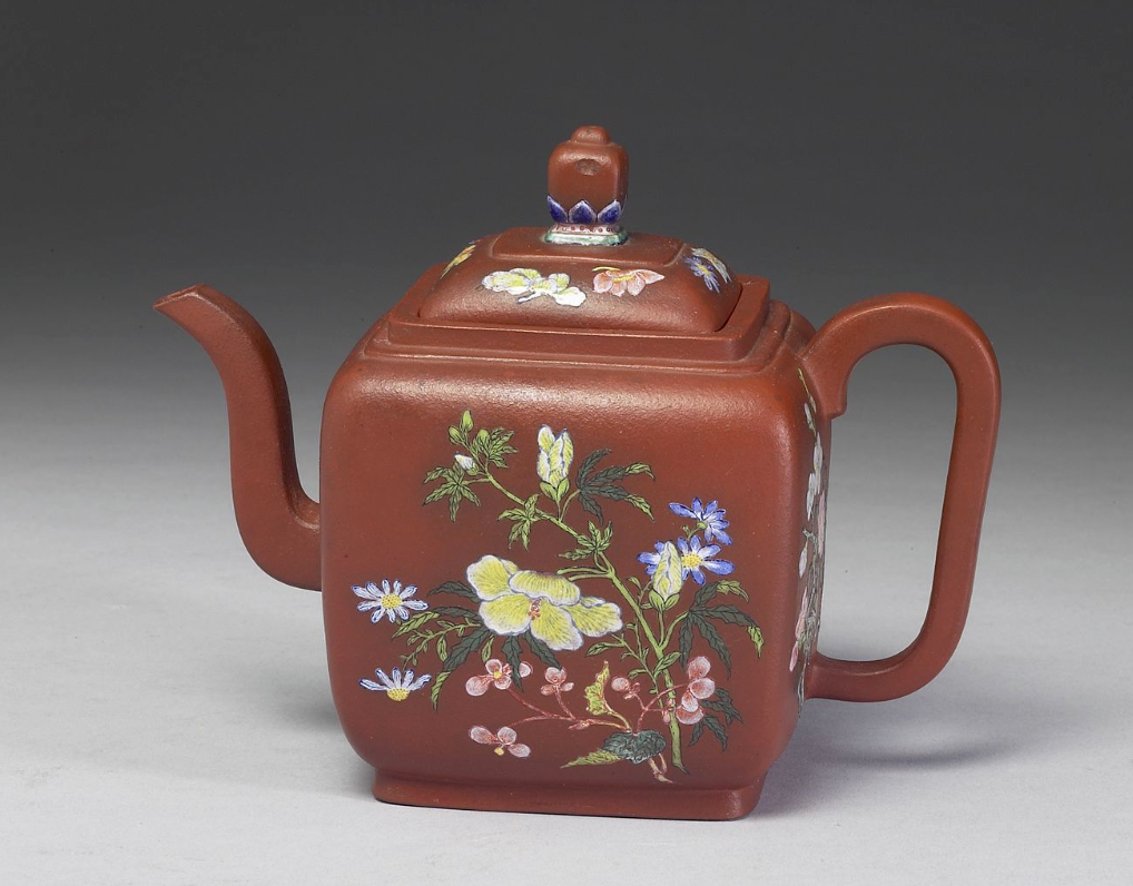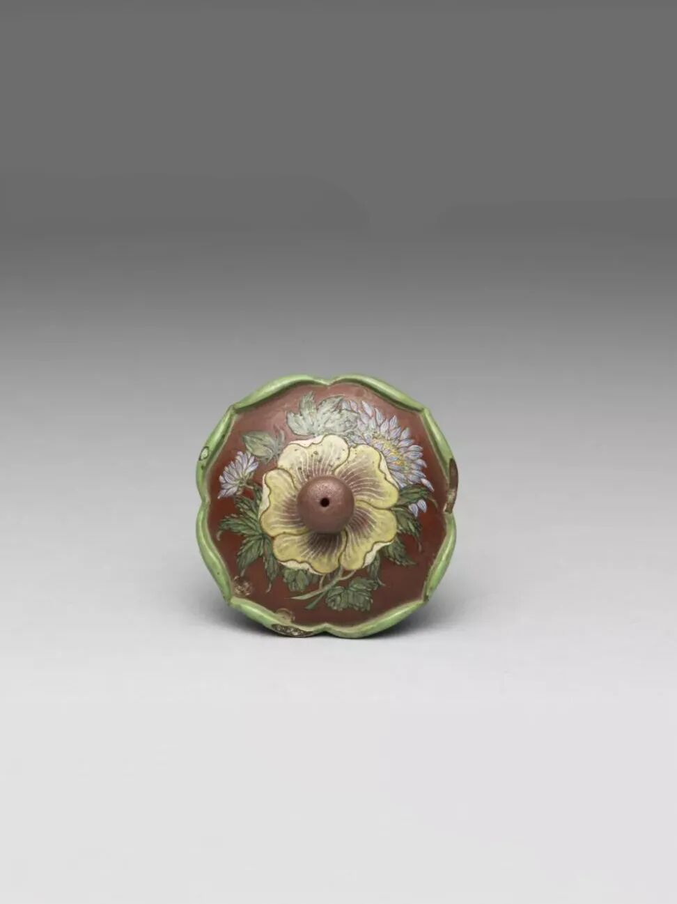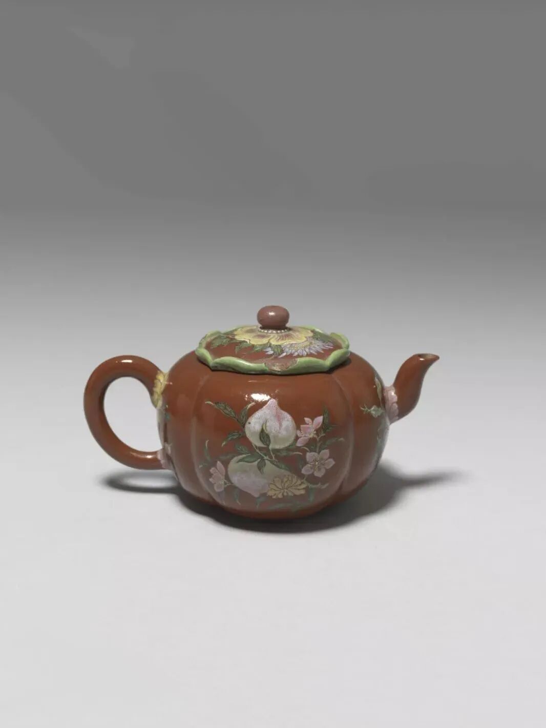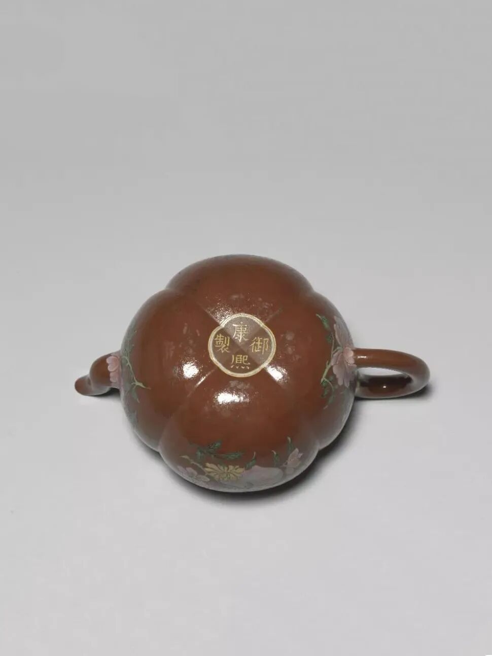据了解,台北故宫仿北京故宫的样式而建,不但是中国4大故宫之一,同样还是中国3大博物馆之一。其博物馆内收藏了数量极为庞大的中国国宝。 其中还藏有一批精美的紫砂器,部分更是举世无双的孤品,堪称绝世之作,品相完好绝妙,连故宫博物院的藏品也不及它们,非常罕见! 长 110.7cm 此作为传世唯一紫砂胎仿仲尼式琴。通体施鳝鱼黄釉并有打磨痕,多处露出胎色。岳山及腹下有窑变蓝、紫和月白等各色大小斑点。 琴徽填以白釉,雁足与轸均皆为白玉。龙唇、岳山、轸槽、雁足孔等未施釉,露紫砂胎。龙池内以篆书刻「维沙陶瓦,制从鸿蒙。鸢飞鱼跃,为歌南风」四句诗。 琴首系丝线穗七根,每一丝穗各系一玉珠,琴背凤沼内同样以篆书刻出「修身理性」四字琴名。传达出做琴师傅以为琴能陶冶性情,具有教化的功能。 乾隆十一年(1746)皇帝降旨宫廷刻手朱彩在琴首镌刻乾隆皇帝咏〈宋瓷琴〉御制诗,诗末署「乾隆丙寅秋八月御赏幷题句」纪年铭(乾隆十一年,1746),并落「乾隆御赏」、「几暇怡情」两枚钤印。 此琴也为之加配「锦囊漆匣」,这是目前所能追溯到的最早的流传记录。 最高10.3cm 此器状连蒂带枝叶蟠桃,中空,尖端有小孔为流,另端折枝高起处为注口。 全器满釉,光泽内敛,积釉处天蓝凝厚,薄处泛黄;釉面现小白点并砂眼多处。 腹部隐约陷下「万寿齐天」四字。底部有小支钉痕三。此种以动植物天然肖形为题材,制作生动且巧妙实用的文房用品,为明末清初盛行的风气,桃形的水往或笔洗,屡载于文人笔记中。 本器塑形生动,所施天蓝釉色属钧釉系统;虽然金华、景德镇、广窑皆盛产仿钧釉色作品,但此件文具似较近于宜兴的制作技法、釉及造形。 高3.6cm 口径5.6cm 底径3.1cm 紫砂紫金釉套杯,由五件大至小可依序套合之小杯相叠成套,俗称套杯。以紫砂为胎,外壁施罩紫金釉,杯内于烧成后加镶金属,整体典雅富丽。 从紫金釉套杯配有专属之木匣、锦袱,或可推测其为当时受到皇帝珍赏之品茗茶器。 通盖高11.6cm 高6.4cm 口径6.4cm 底径7.1 x 7.1cm 宜兴胎画珐琅五彩四季花卉方壶,壶身周正,壶流、壶钮及壶把亦作四方。壶身、壶盖四面,以珐琅彩绘饰四季花卉,整体炫丽而缤纷。 壶底正中先以白色彩料打底,后书「康熙御制」四字蓝料楷书款,或可推测其为康熙皇帝御用的茶器之一。 根据乾隆三年《造办处各作成做活计清档》记载,为乾隆皇帝推动一系列为文物配匣的作品中,首批入选的「宜兴四方画珐琅四季茶壶」,其重要性不言而喻。 高8.7cm 壶7.0cm 口径5.7cm 宜兴胎画珐琅万寿长春海棠式壶,以四瓣瓜稜为壶身,以缱绻瓜叶为壶盖,整体颇具像生趣味。 此类作品壶内与壶把相对应处,可触摸一道纵向接迹,壶内、外底部皆留有一周接痕。 也就是说,该类制品并非以四瓣泥片拼接,而是先以长方形泥片圈围筒状置于底片(壶底),修整时再以工具压印出瓜稜。 其壶腹两侧以珐琅彩绘饰桃实、桃花,象征长寿;流嘴二侧则为月季花,象征长春,取「万寿长春」之吉祥寓意。