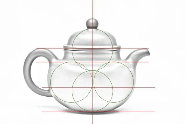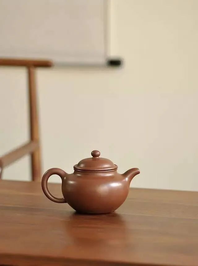 壶盖极度夸张,呈饱满的半圆球;壶钮圆珠适度放扁,在视觉上让壶盖的张力充分展开;