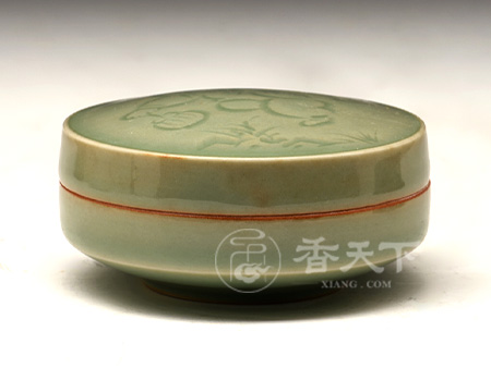 “节庆有余”香盒 龙窑柴烧梅子青釉