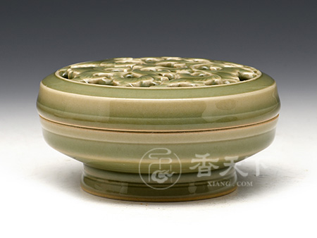 “缠枝莲”纹熏香炉 龙窑柴烧梅子青釉