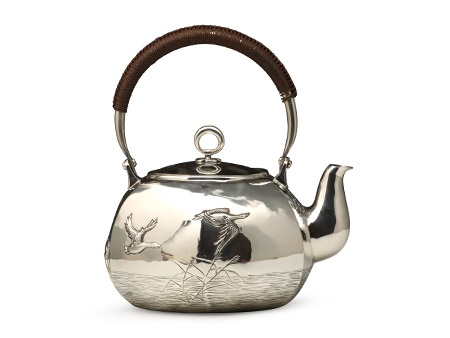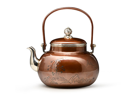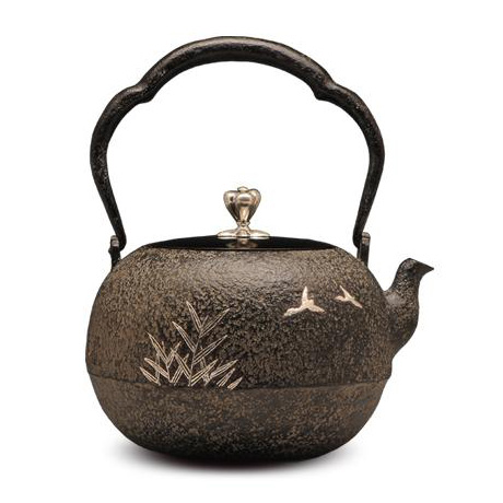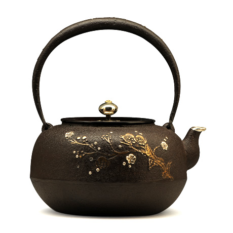 荒井工房 金银镶嵌梅花纹铁壶15号
