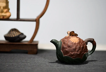 “石瓢”最早称为“石铫”,“铫”在《辞海》中释为“吊子,一种有柄,有流的小烹器”。“铫”从金属器皿变为陶器,最早见于北宋大学士苏轼《试院煎茶》诗:“且学公家作名钦,砖炉石铫行相随”。苏东坡把金属“铫”改为石“铫”,这与当时的茶道有着密切的关系。苏东坡贬官到宜兴蜀山教书,发现当地的紫色砂罐煮茶比铜、铁器皿味道好,于是他就地取材,模仿金属吊子设计了一把既有“流”(壶嘴),又有”梁”(壶提)的砂陶之“铫”用来煮茶,这“铫”也即后人所称的“东坡提梁”壶,这可谓最早的紫砂“石铫”壶。 从留传于世的石铫壶看,至陈曼生、杨彭年时期,已有了很大的变化,更趋向文人化、艺术化。“曼生石铫”主要特色是上小下大,重心下垂,使用稳当,壶嘴为矮而有力的直筒形,出水畅顺,壶身呈“金字塔”式,观赏端庄。“曼生石铫”与“子沾石铫”相比,虽同为彭年所制,但前者更显饱满而丰润,后者则刚烈而古拙,这可能是因人的个性而在壶的艺术上表现。 那么,紫砂“石铫”何时称“石瓢”呢?这应从顾景舟时期说起,顾引用古文“弱水三千,仅饮一瓢”,“石铫”应称“石瓢”,从此相沿均称石瓢壶。