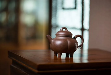 21.壶体基本完成后,可在壶底、壶盖、把钤上壶艺术家印章,壶底用顶柱支撑,印章对准位置,并用木榔头敲击,使印文清晰。