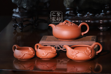 紫砂壶中的粉彩装饰,明显地受到瓷器装饰的影响,早期的紫砂壶粉彩装饰,多为花卉,颇艳丽,制作工整。这类壶多销往国外,以迎合国外买主的需要。具体的外销时间可能为雍正至乾隆年间。