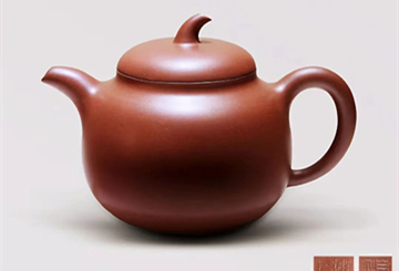 南瓜壶:香港中文大学藏,壶把下方钤同款篆书方印,紫泥调砂工艺,台湾曾发行其邮票 。