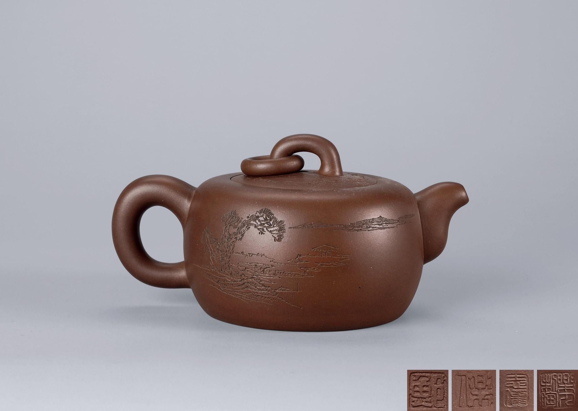 镶接:天衣无缝的魔法 紫砂行话:“三分做,七分接”。以竹刀在身筒开“流孔”与“把孔”,脂泥为媒,将流、把缓缓嵌入。老匠人闭目摩挲接缝,凭指尖感知万分之一毫米的错位。牛角明针蘸清水刮压百遍,直至衔接处浑然天成,不见脂痕。