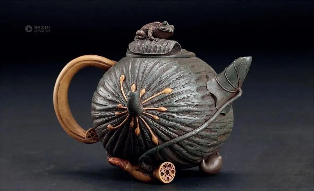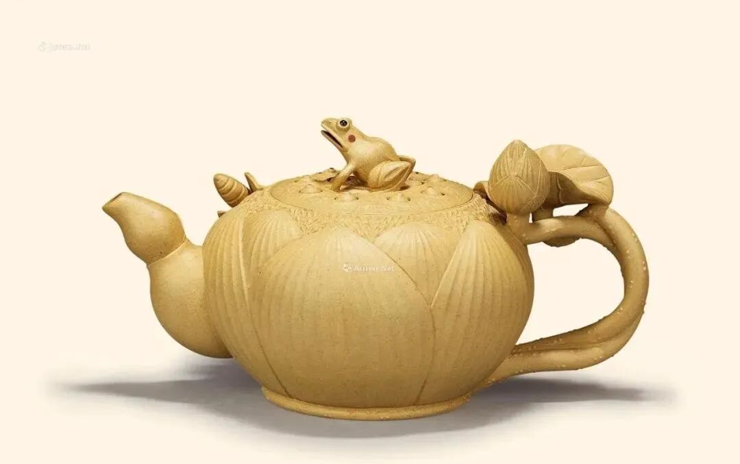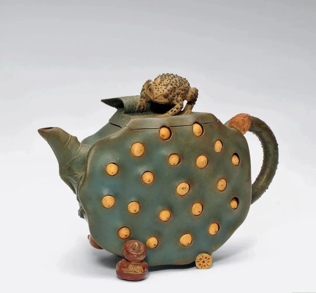 蒋蓉(1919- 2008),别号林凤,江苏省宜兴市川埠潜洛人。1995年被授予中国工艺美术大师称号,是蒋氏家族的代表,蒋氏陶艺的里程碑艺人 。 “花货”形,意取天然,匠心铸成, 蒋蓉在紫砂花货的制作上独领风骚,成就突出。她将动物、植物、花果等天然形体,经过艺术提炼之后,运用于紫砂创作中,使紫砂壶的艺术美感与天然生趣融为一体。早在1995年她就被授予“中国工艺美术大师”称号。她是中国紫砂工艺史上第一位女工艺美术大师。 一起来欣赏一下大师的杰作: ▲蒋蓉 竹根 ▲蒋蓉 柏树桩壶 ▲蒋蓉 石榴 ▲蒋蓉 月色蛙莲壶 ▲蒋蓉 芒果 ▲蒋蓉 九头荷花壶 ▲蒋蓉 白藕酒具 ▲蒋蓉 蛤蟆石榴壶 ▲蒋蓉 蛤蟆莲蓬壶 ▲蒋蓉 三珍壶 ▲蒋蓉 荷叶壶 ▲蒋蓉 青蛙莲芯壶