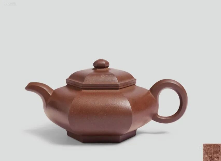 此件拍品为六面紫砂壶,该壶器形非常简练,但不失恢弘之势,表面光润,没有半点装饰,棱角分明笔直,显得十分庄重大方,质地温润细腻,握在手中柔和舒适。此壶整体清雅大方,端庄秀丽,尽显大师风范,是紫砂壶中的珍品。