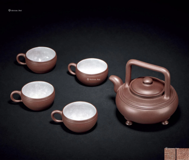 顾景舟制 五头高腰线提梁茶具套组