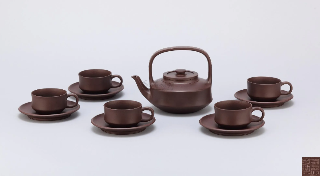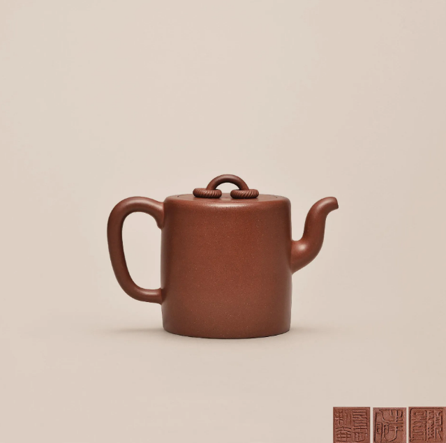 轮廓清晰、锋芒内敛,各个部分的衔接自然贴切、和谐挺刮,造型上节奏紧凑、浑然一体。壶嘴与壶身的连接处、壶颈的肩线线条等细节处都显现出手工艺的趣味和紫砂传统造型艺术的精神。