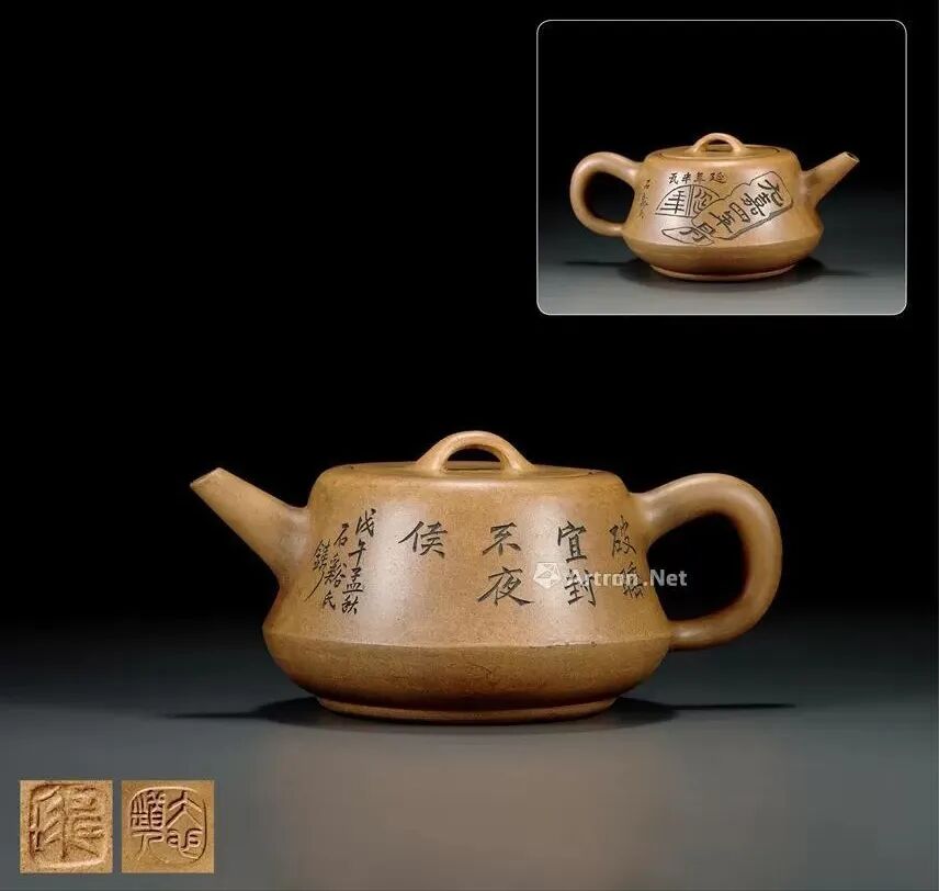 并且自陈曼生首创的文人壶在嘉庆、道光年间蔚成风气,文人与匠人合作之下,紫砂壶融造型、文学、绘画、书法、篆刻于一体,所谓“壶随字贵,字依壶传”。