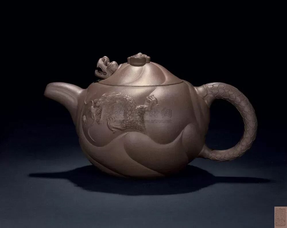 清代紫砂壶注重华丽的外部装饰,从康熙中期到乾隆晚期,装饰艺术发展到了顶峰,出现了浮雕、贴花、泥绘、雕漆、釉彩、包锡、抛光等多种技法。