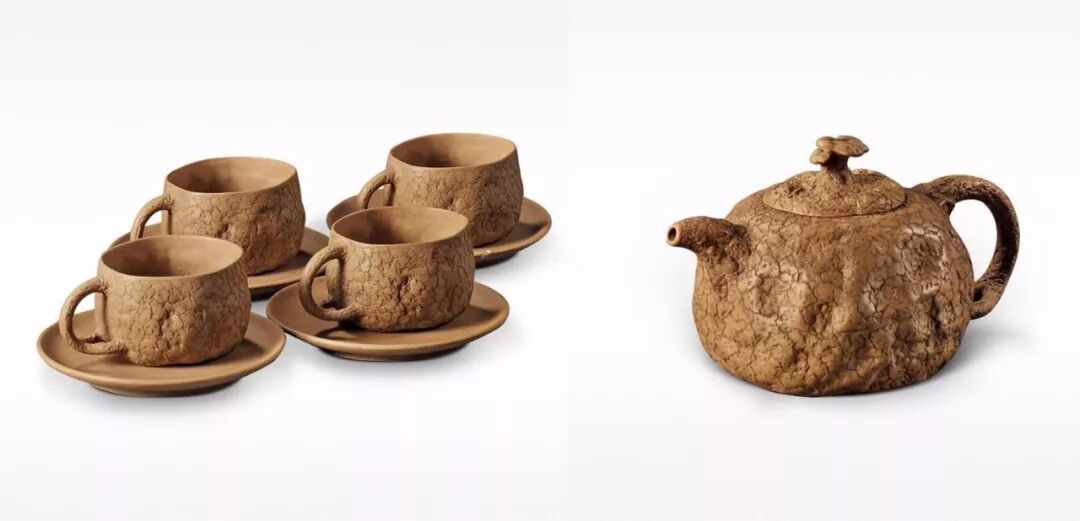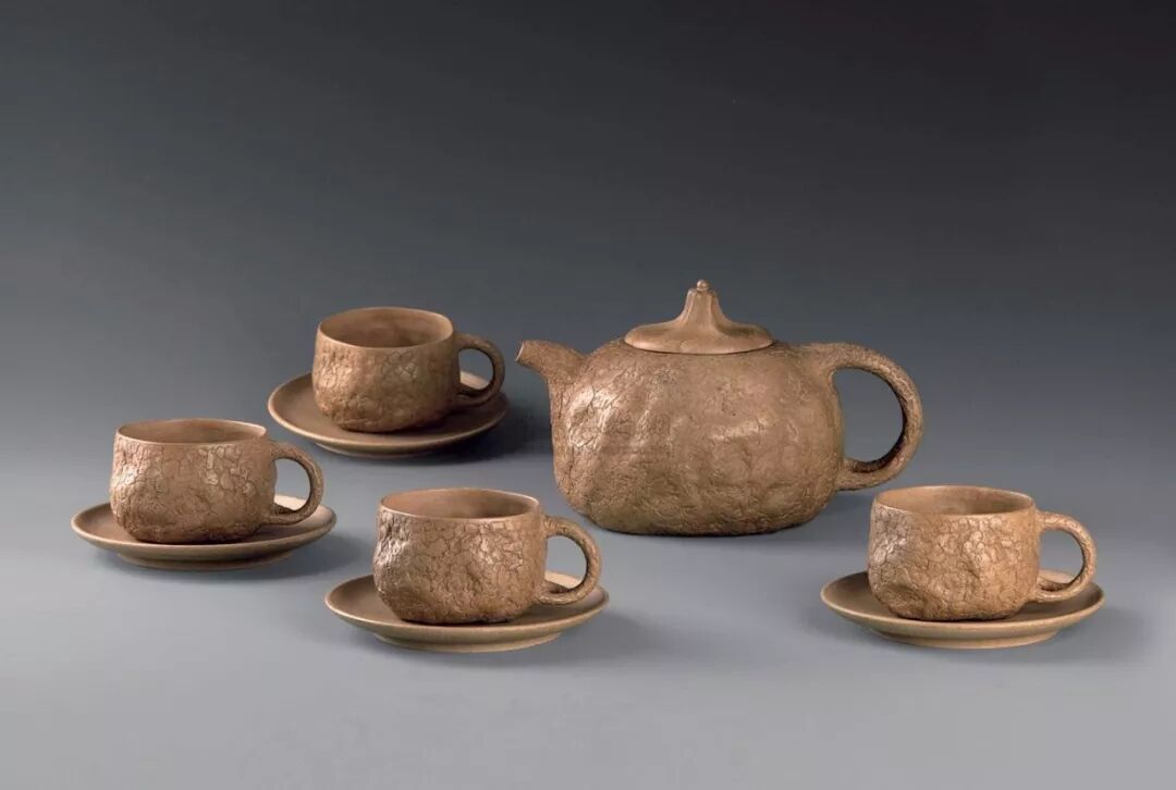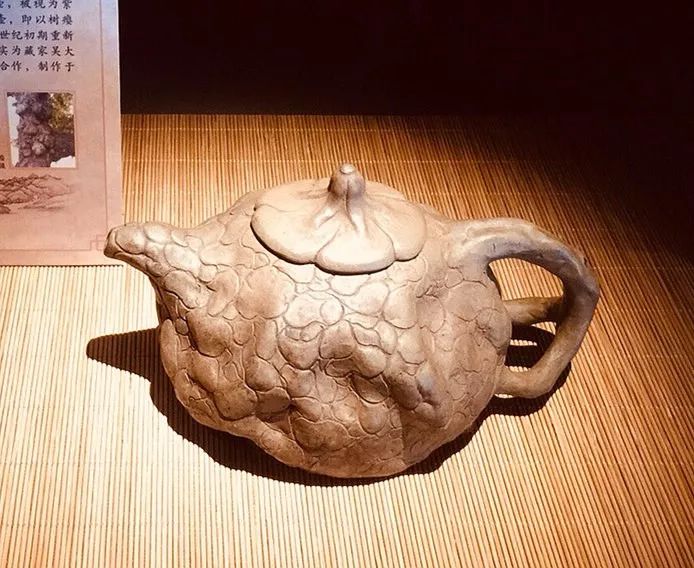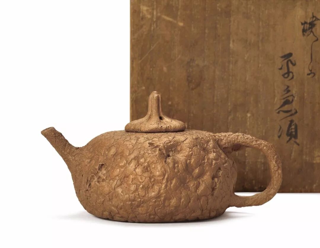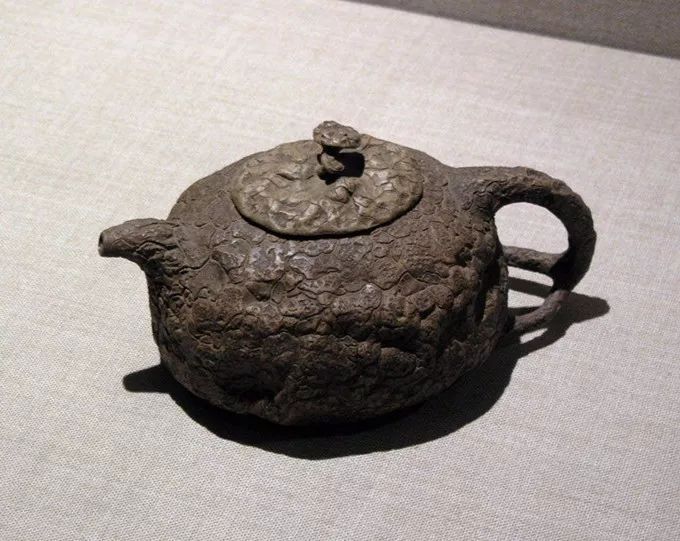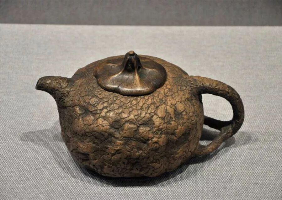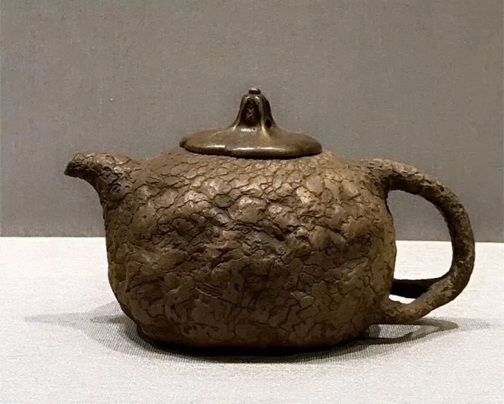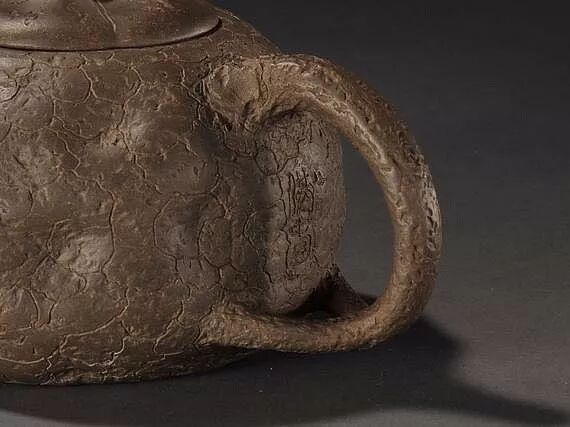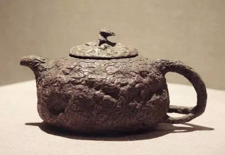 供春壶是紫砂发展史上开始有记载的第一件作品,是供春仿照金沙寺旁大银杏树的树瘿形状制作,壶表满布褶皱斑驳、缭绕的树瘿纹理,毕显华章,当时人称赞“栗色暗暗,如古今铁,敦庞周正。”
