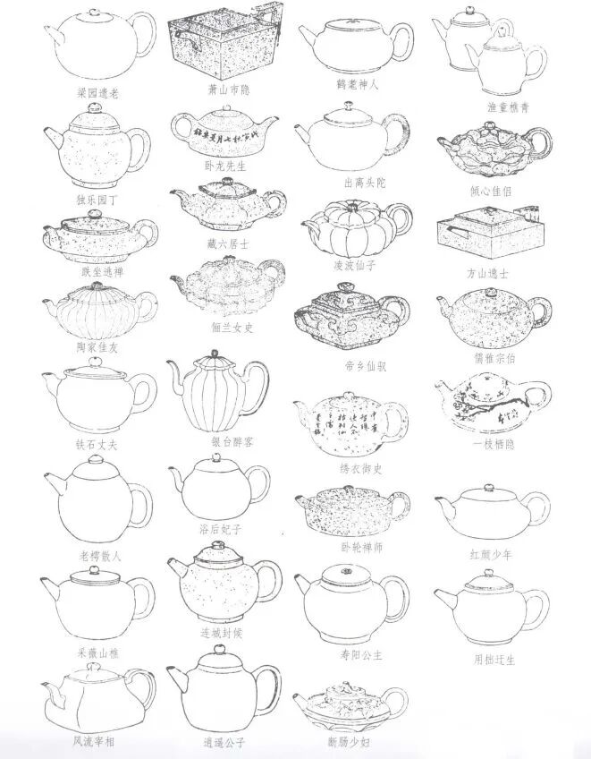 此书记载了三十二件名贵的宜兴紫砂壶,图版为工笔白描,命名皆根据所录茗壶的异性殊性,并详实的注明了茗壶的大小尺寸、形制特色、壶泥色彩以及造器者的印章、铭文、款识摹本。