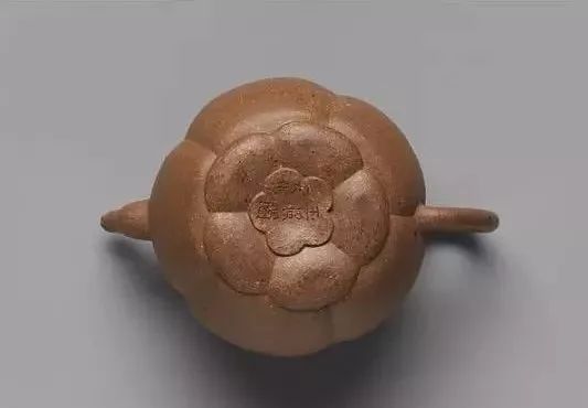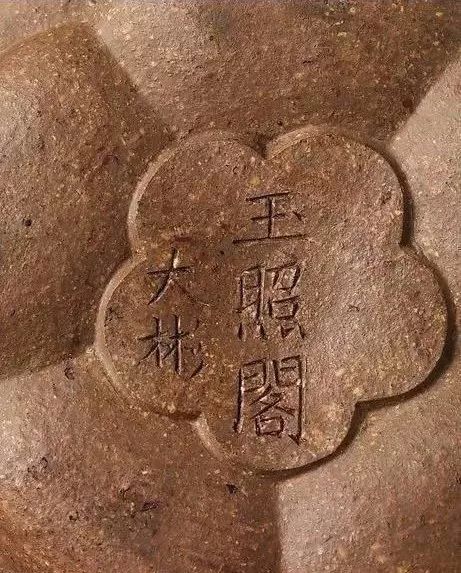 此壶整体作五瓣梅花式,周身闪现浅色的细小颗粒,砂粗而质古、肌理匀,妙趣天成。底款刻“玉照阁 大彬”,此壶是伍德沃德基金1982年购买并赠送给大都会的礼物。