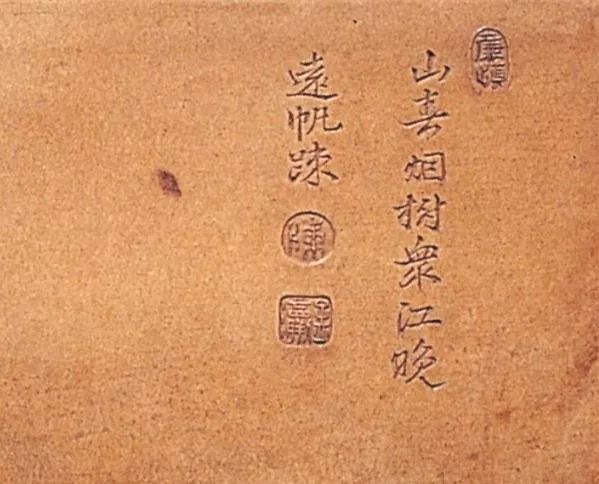 与此壶落款形式相似是,南京博物院藏的时大彬提梁壶,该壶在子口落款“天香阁 大彬”,不同之处是大彬为刻款,天香阁为篆书印款,落款处在口沿,而不是壶底。