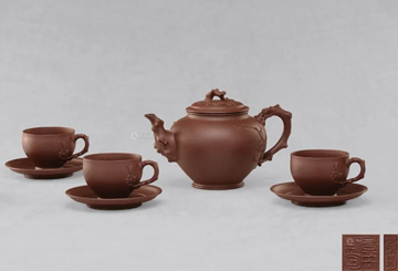 套组茶具(如“五彩缤纷组壶”“五头砂汉方茶具”)因工艺复杂且稀有,价格更高,部分可达 50万至100万元 以上。例如其获金奖的“五彩缤纷组壶”曾引起海内外轰动 。套壶中,杯、碟数量越多价值越高,如“13头希菊茶具”等 。