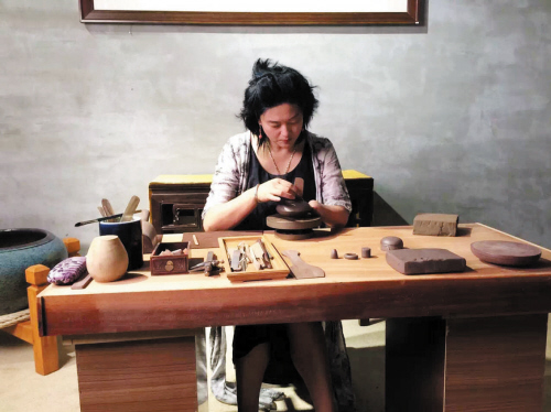 这把被谭戈称为“烂壶”的紫砂壶在一堆制作精美的茶壶里确实不太显眼,壶身似圆非圆,壶盖松松垮垮,只有壶身上特意刻的“谭戈清玩”十分显眼,“没有印章,做工不细致,这一看就是半成品,”但是谭戈开玩笑地说,“这是朋友特意送我的,而且这个壶的紫砂泥特别好,二十多年了,一直留在身边。”