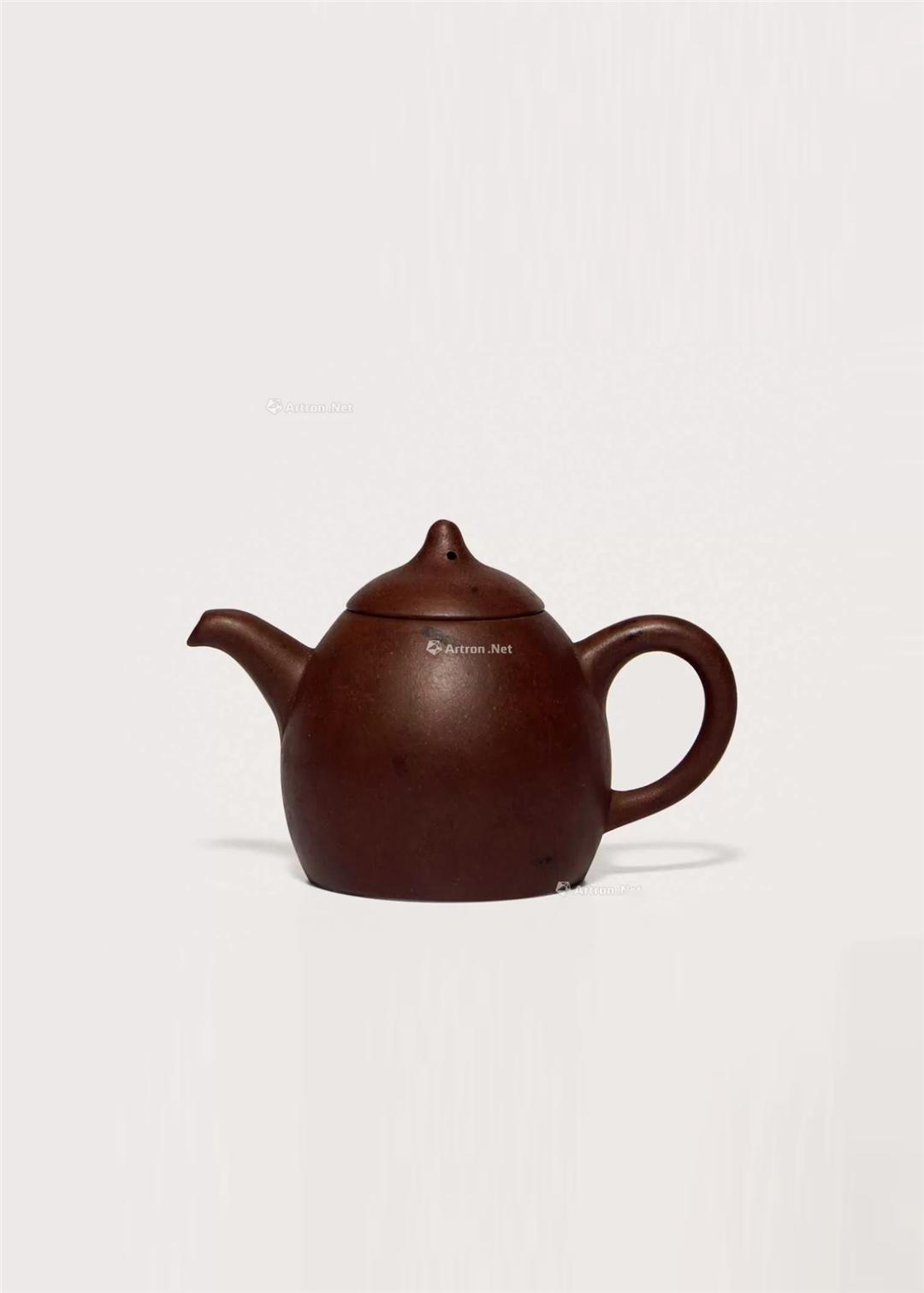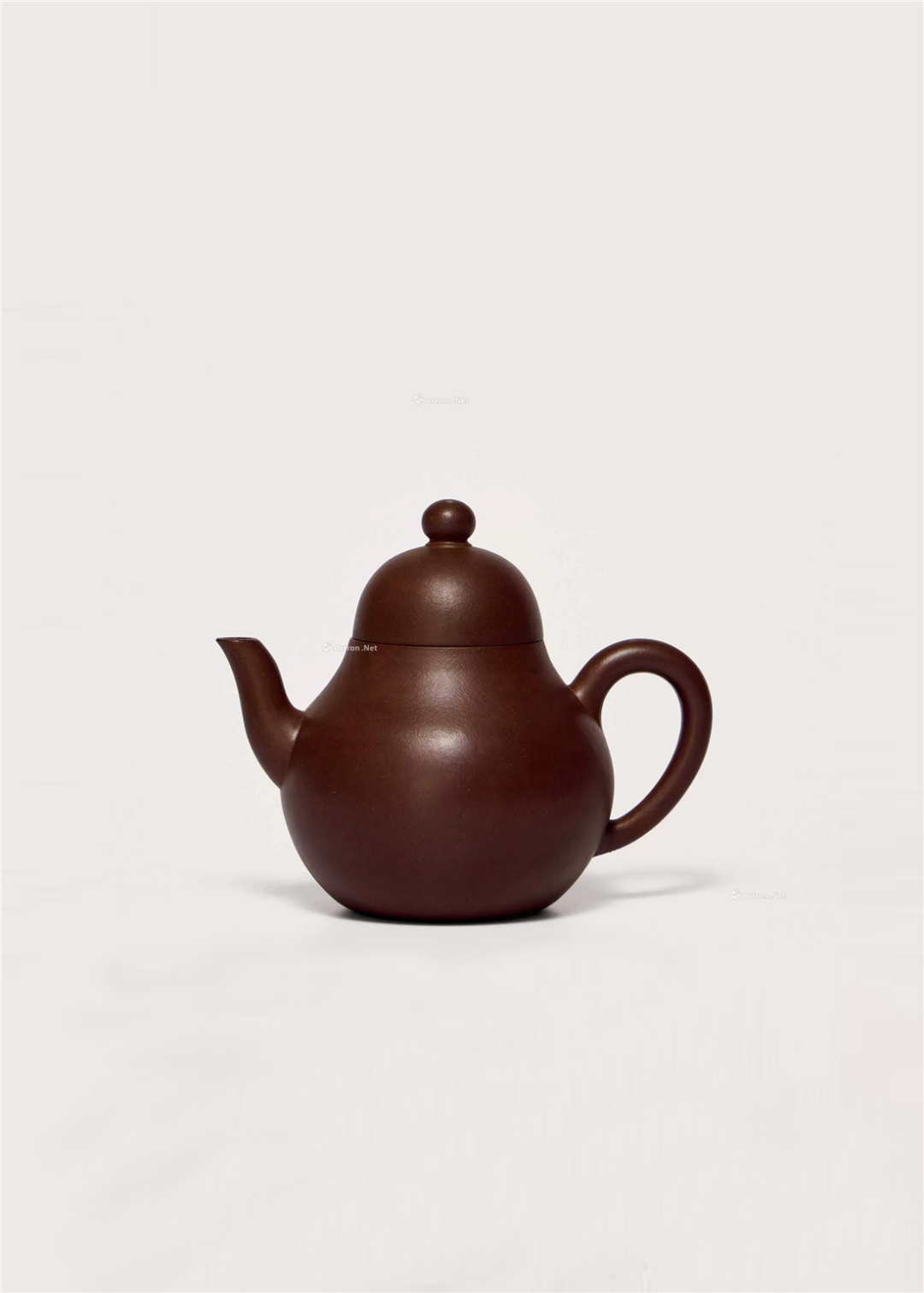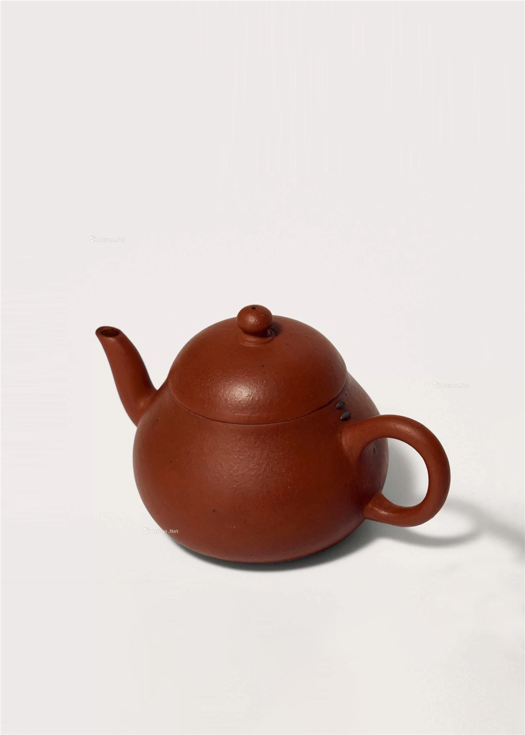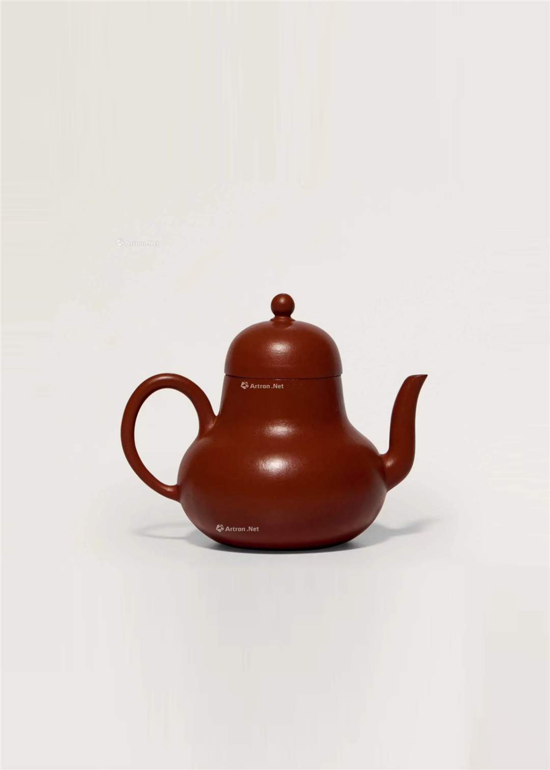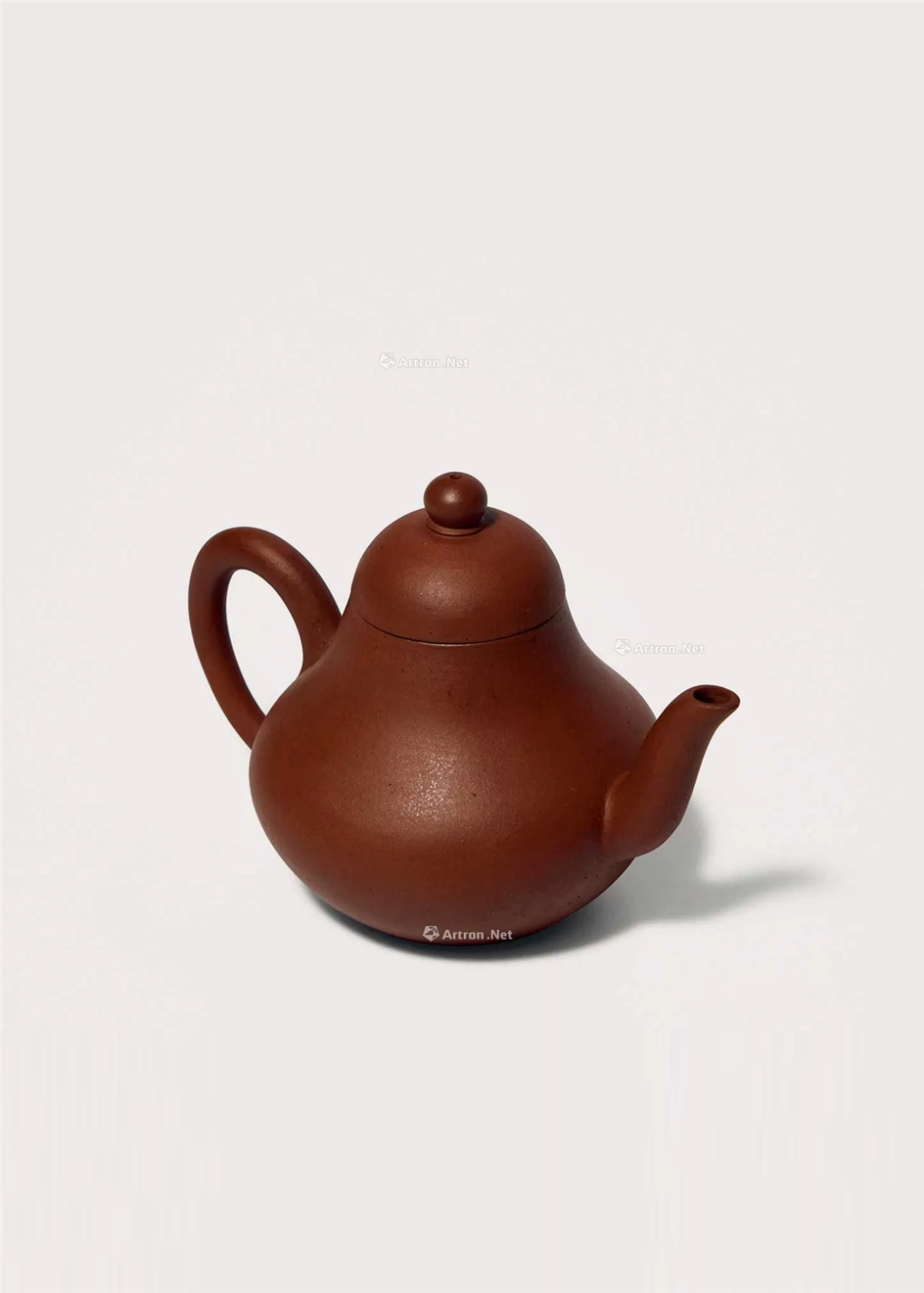 0001 清晚期 孟臣木章款 朱泥小线瓢壶