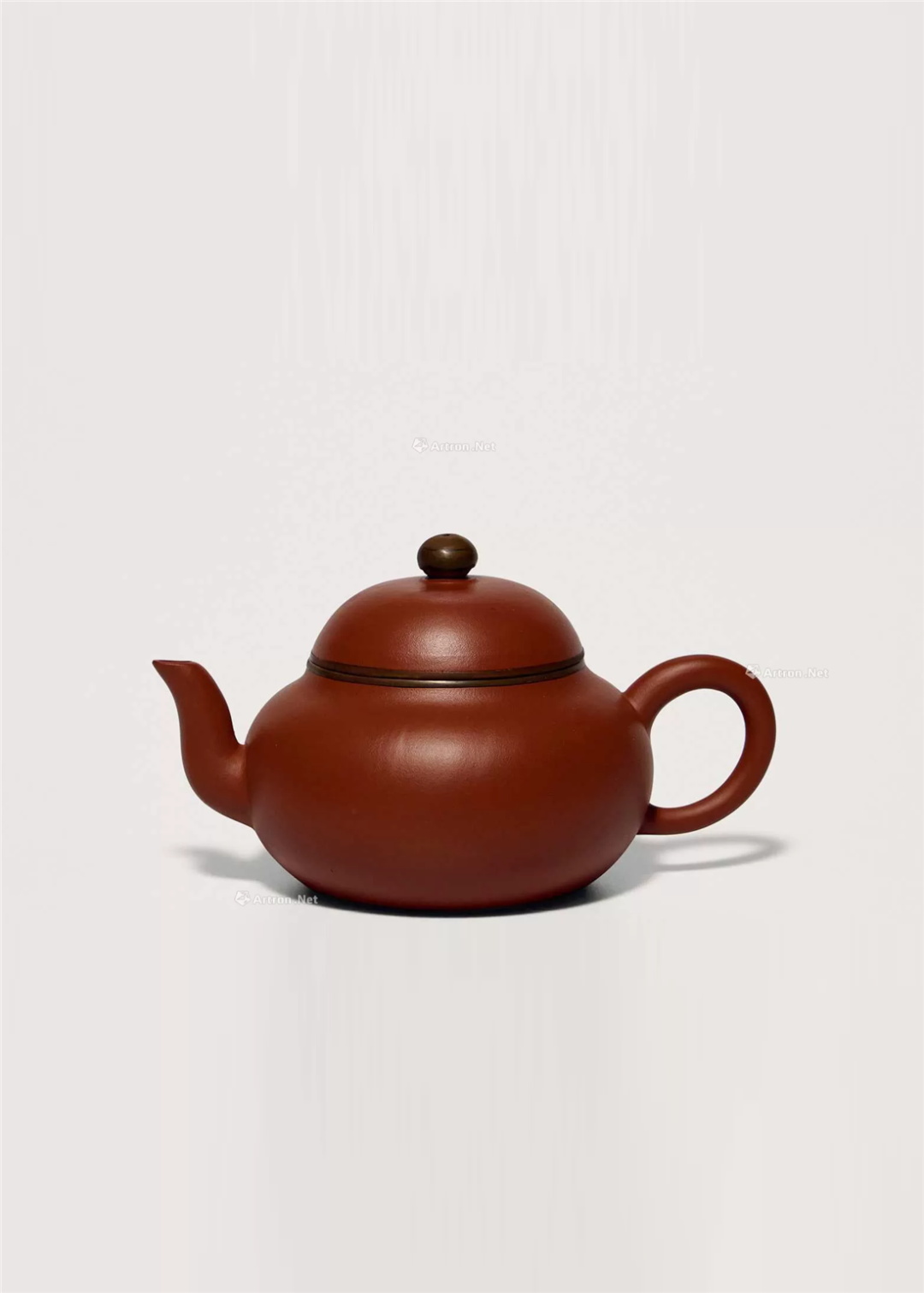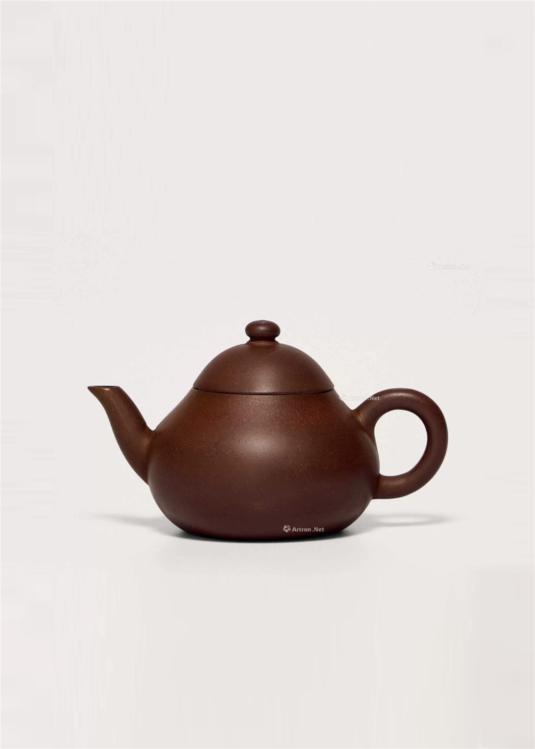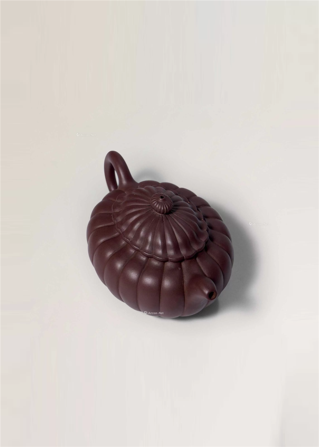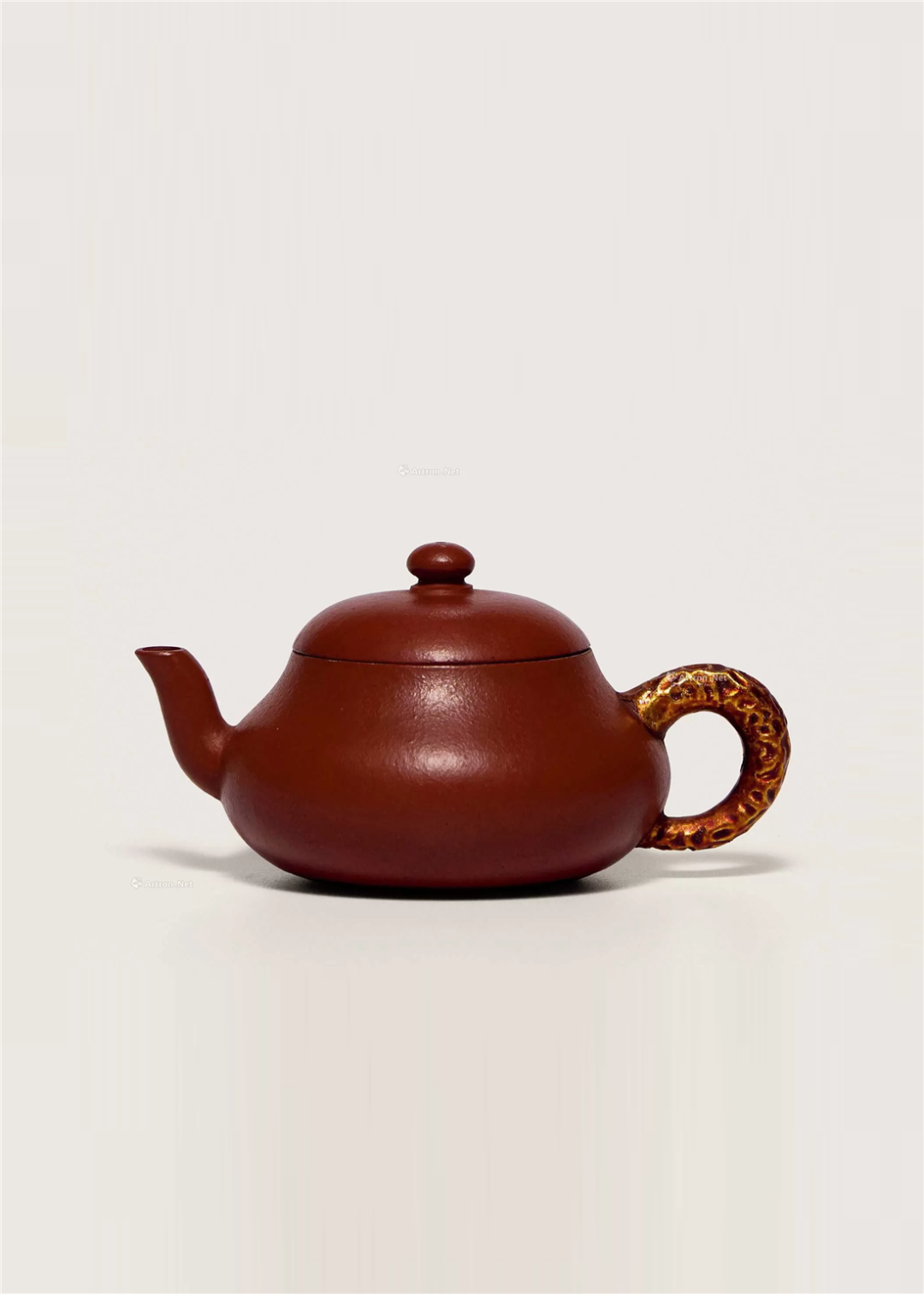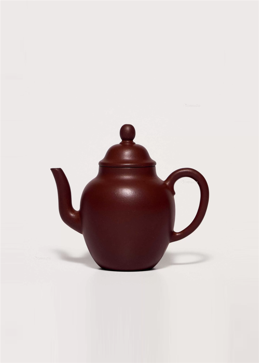 0001 清晚期 孟臣木章款 朱泥小线瓢壶