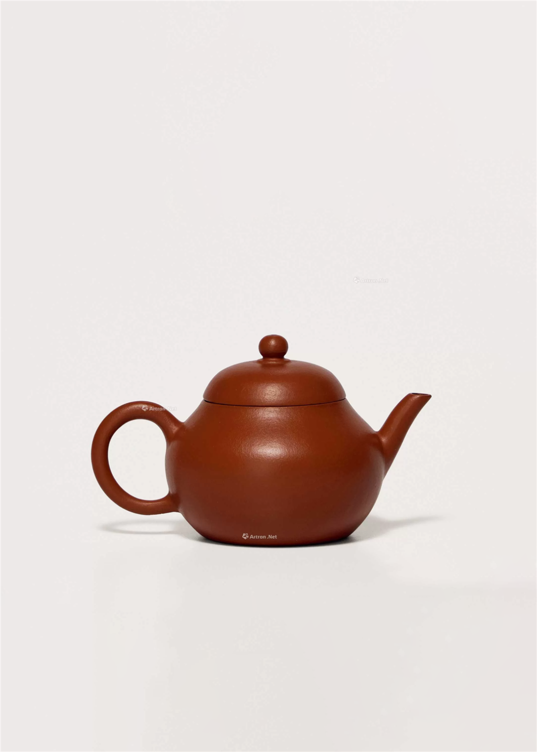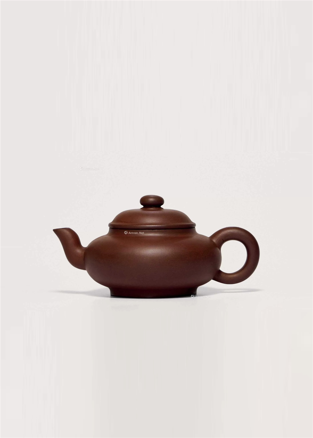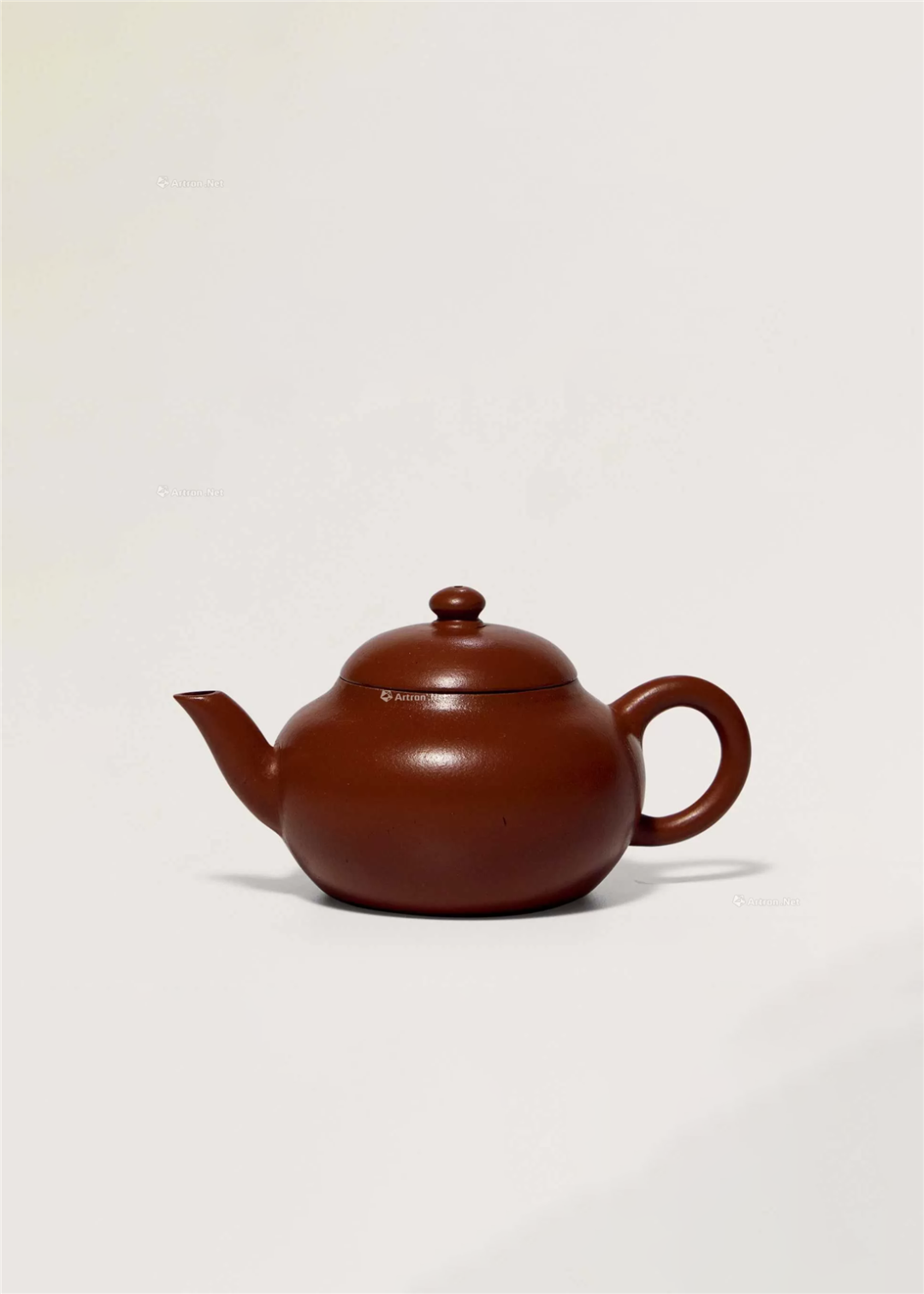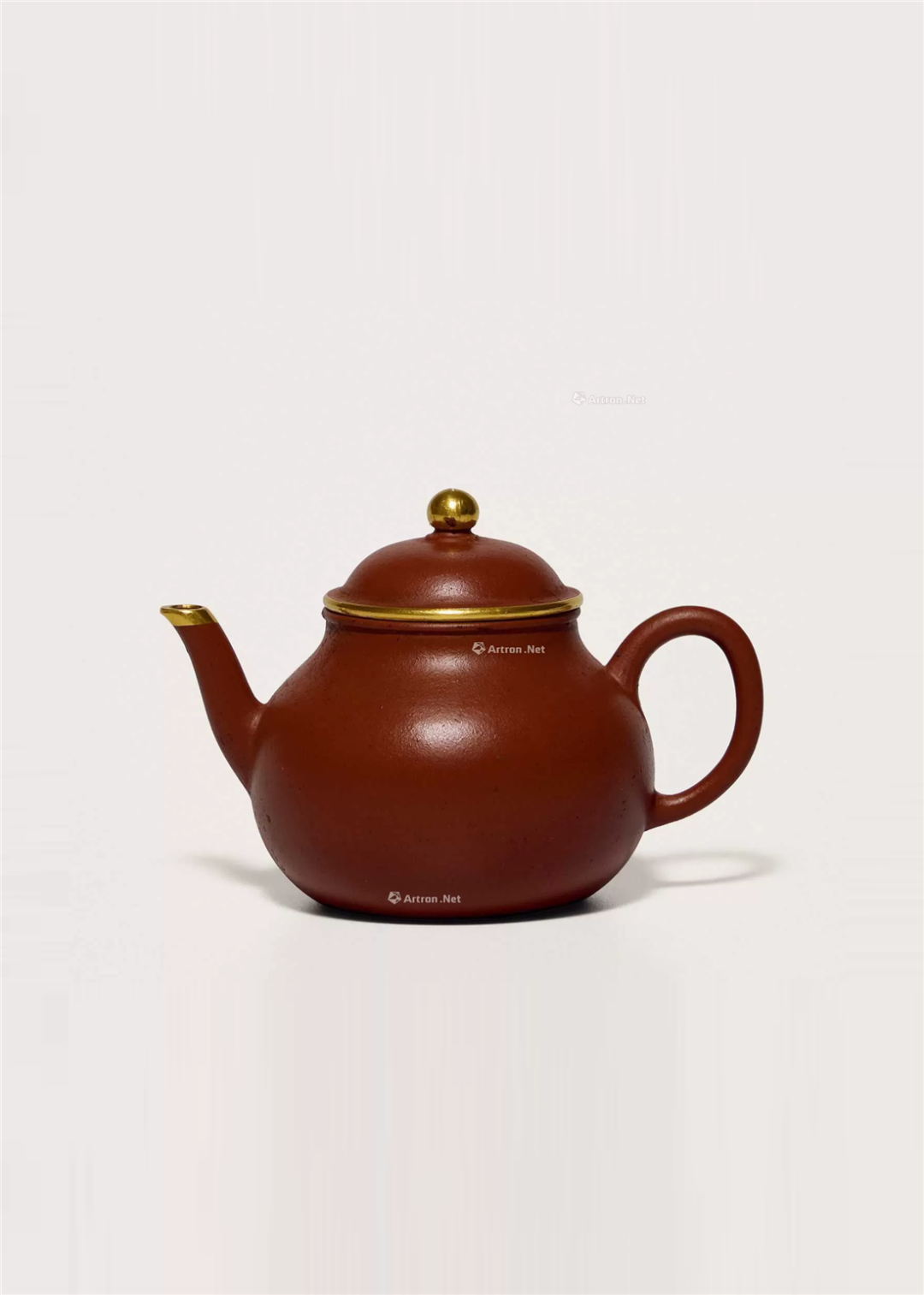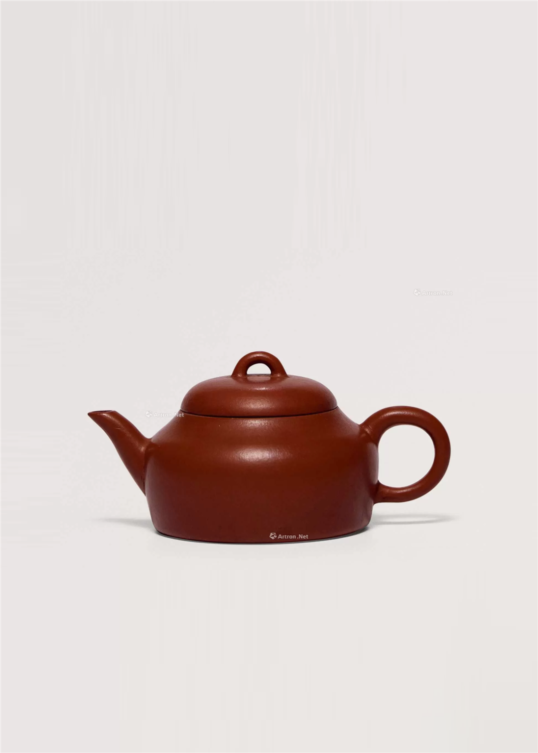0001 清晚期 孟臣木章款 朱泥小线瓢壶