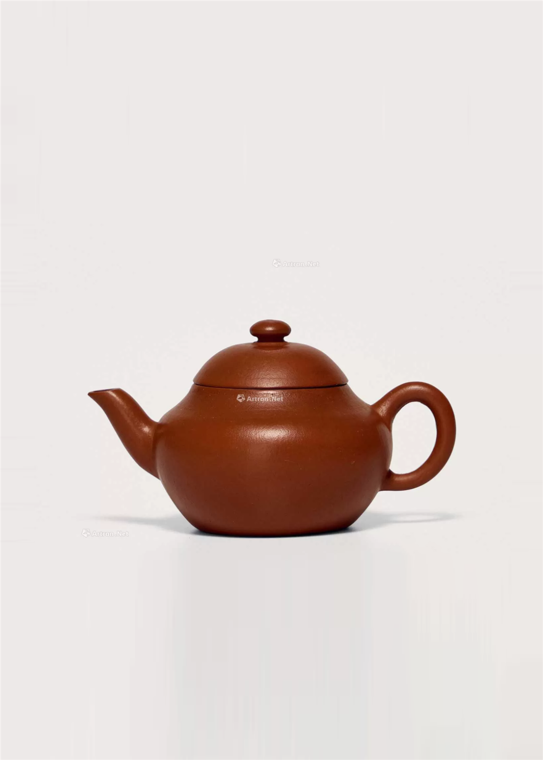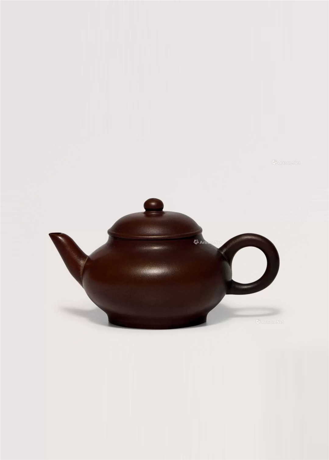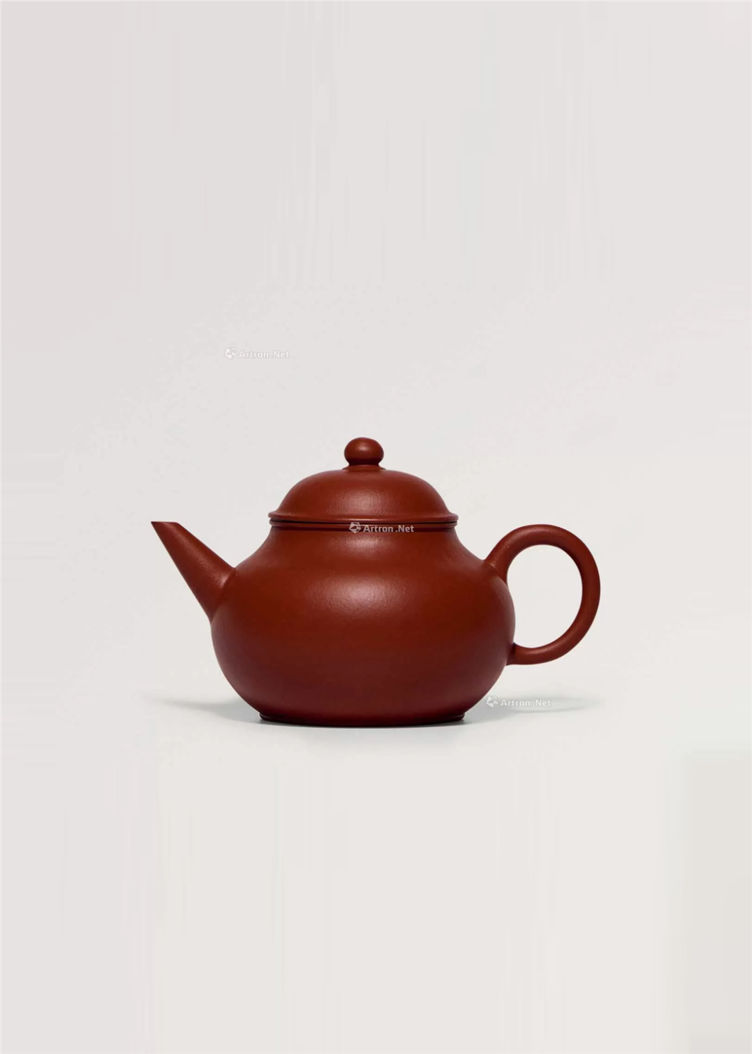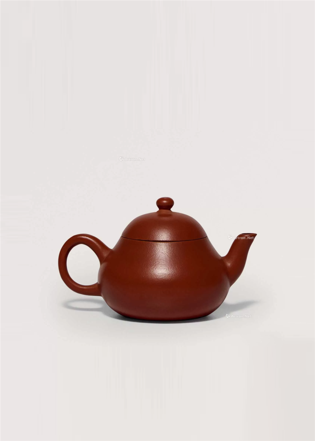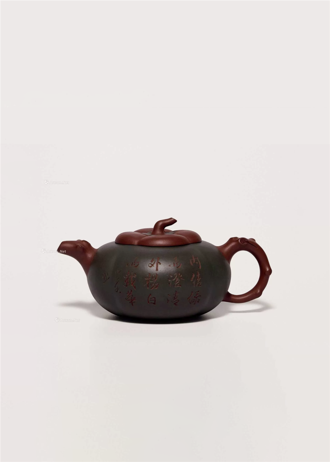 0001 清晚期 孟臣木章款 朱泥小线瓢壶