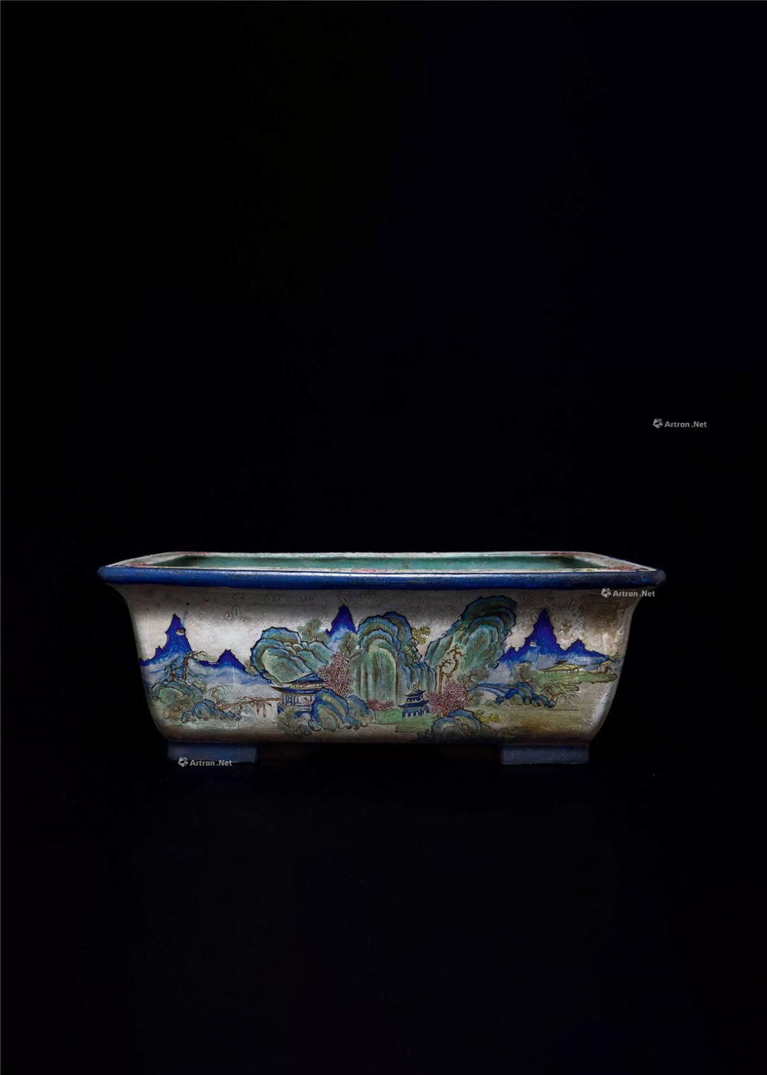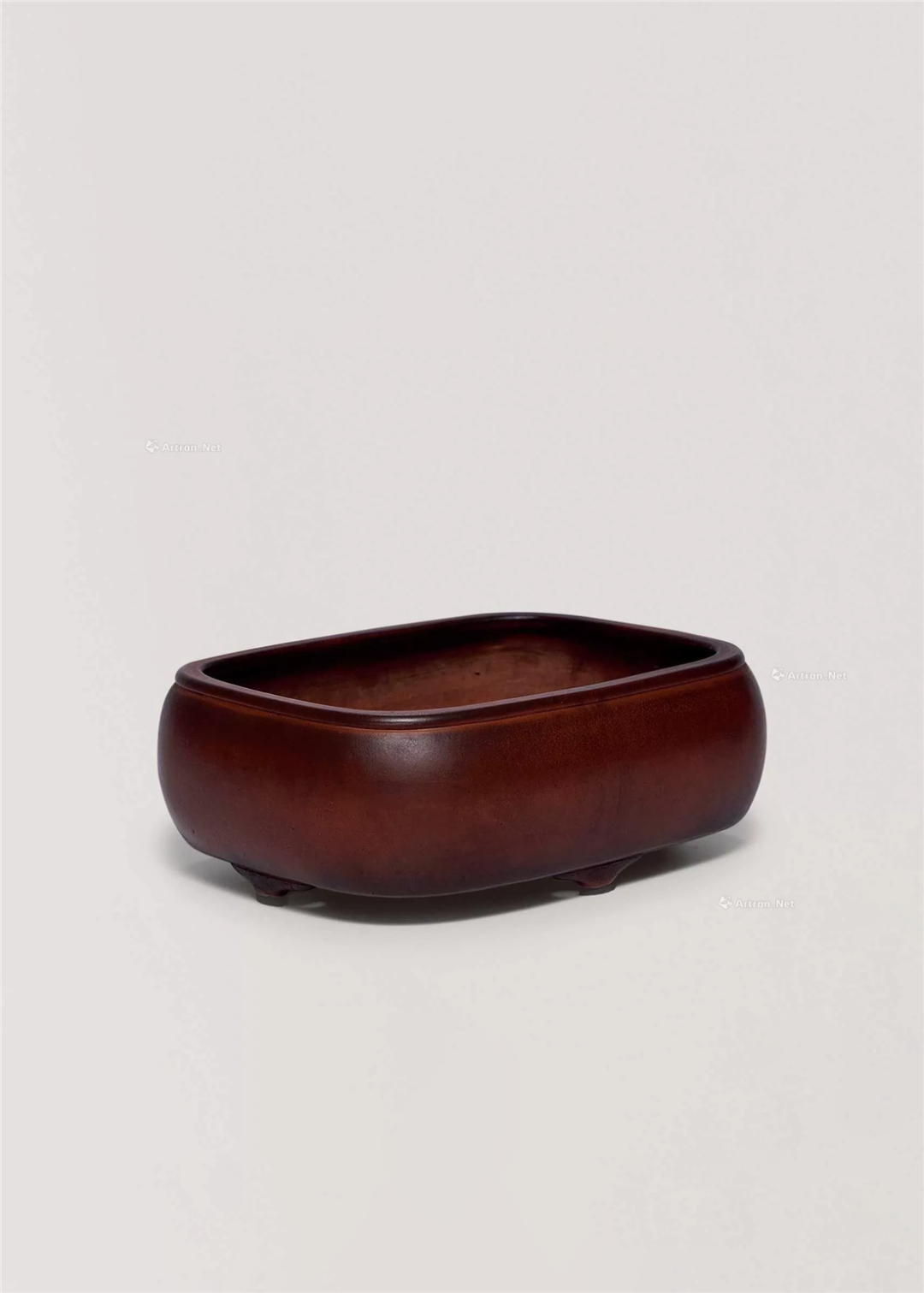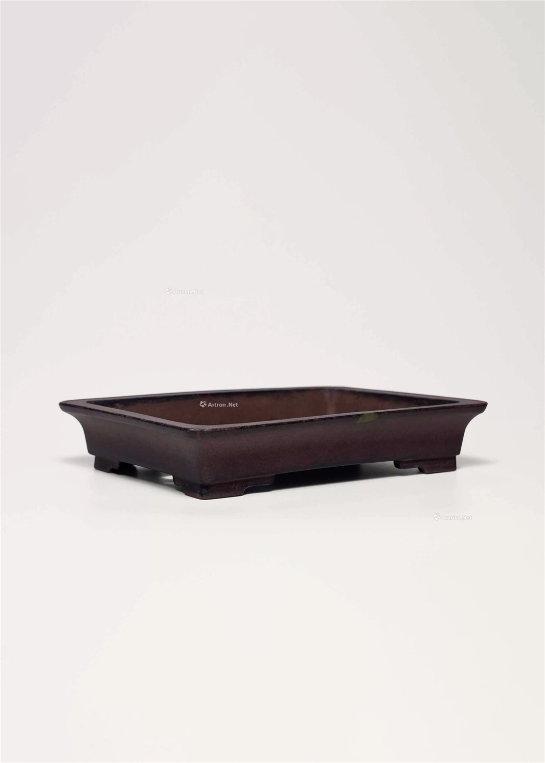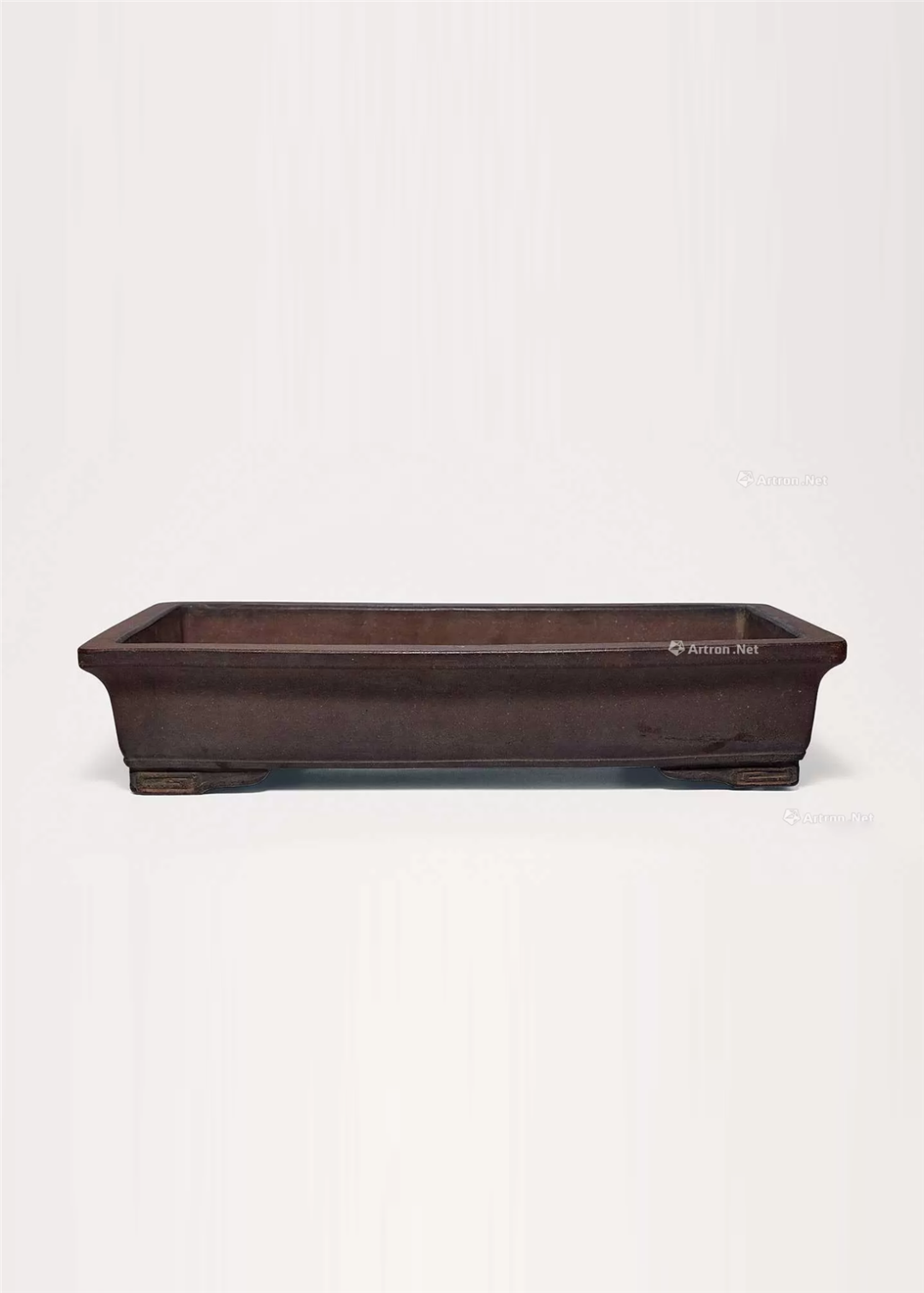 0027 清晚期 陈鸣远制款 回纹足长方盆
