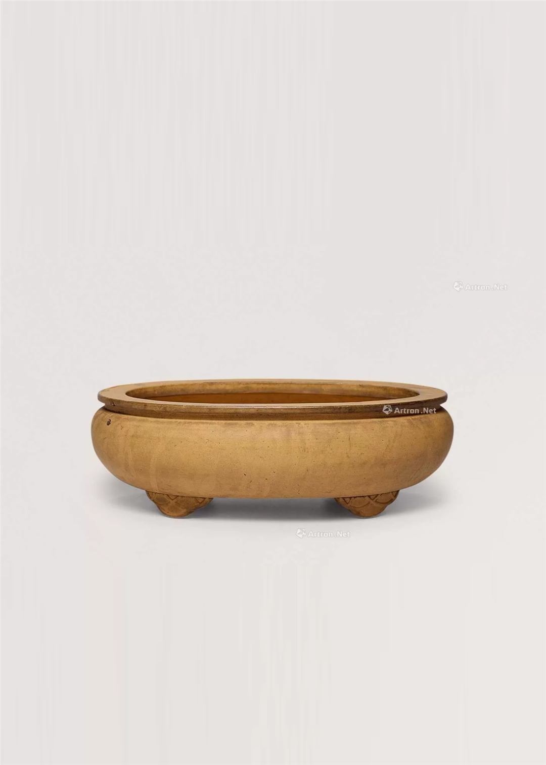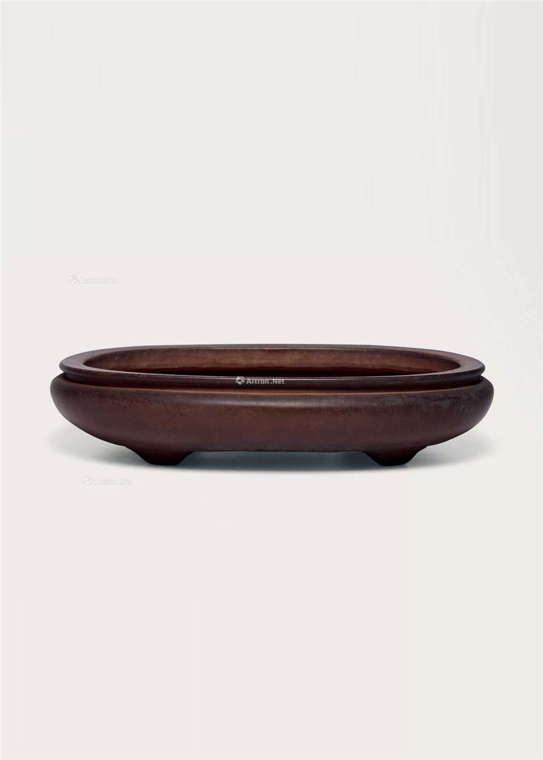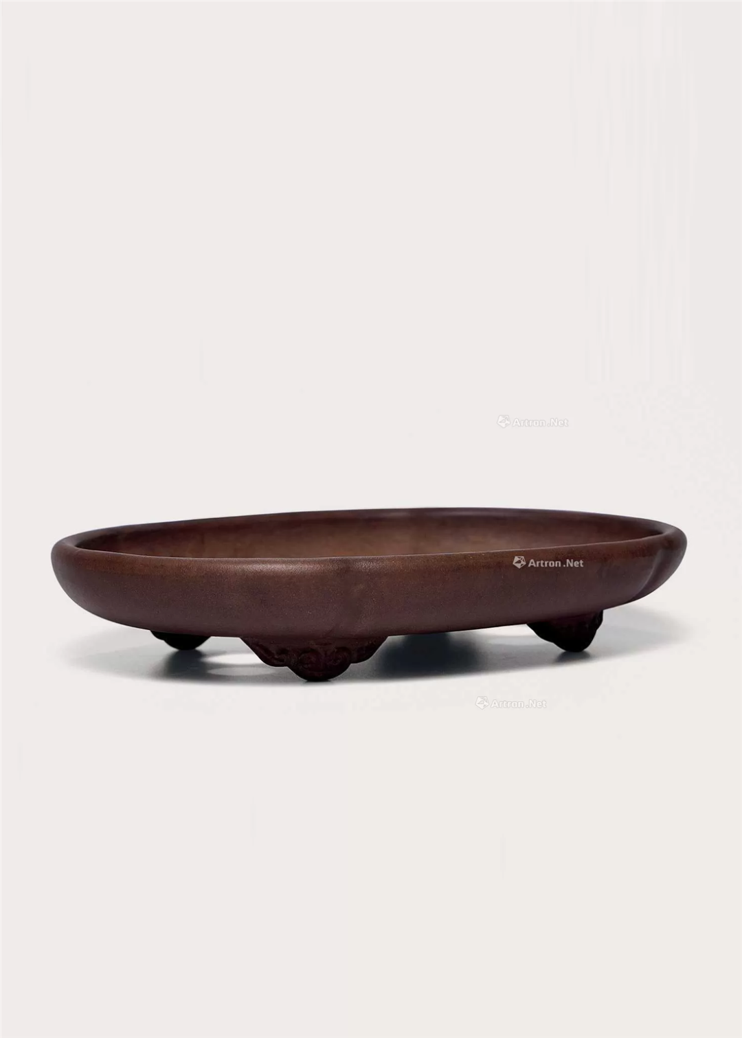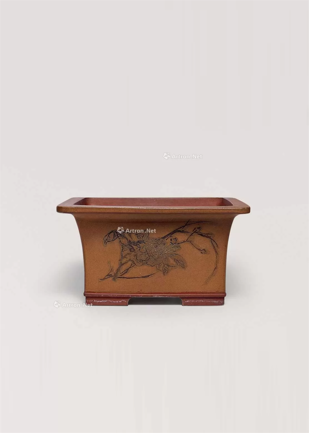 0027 清晚期 陈鸣远制款 回纹足长方盆