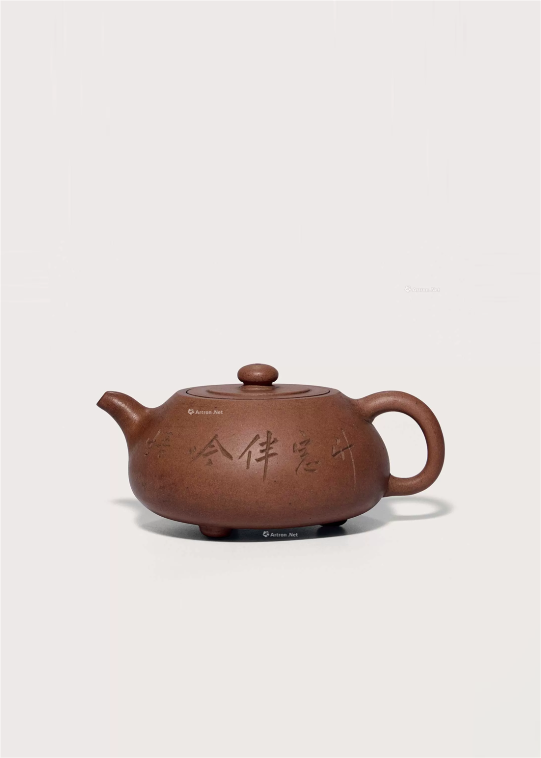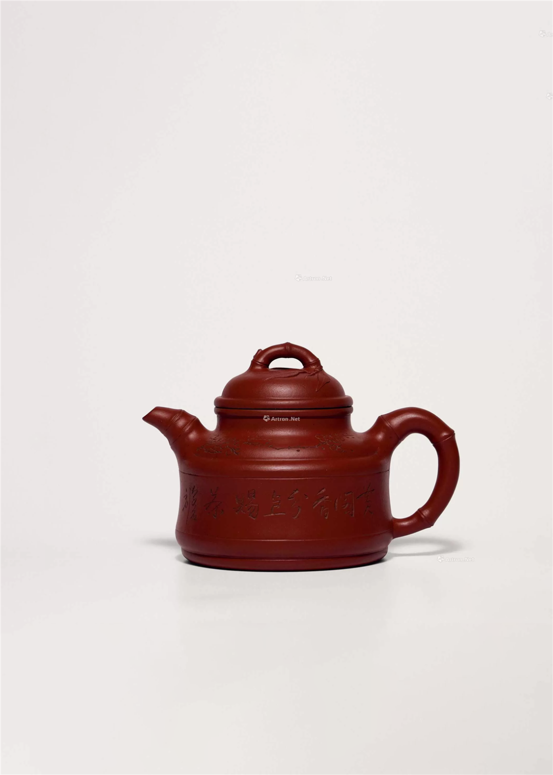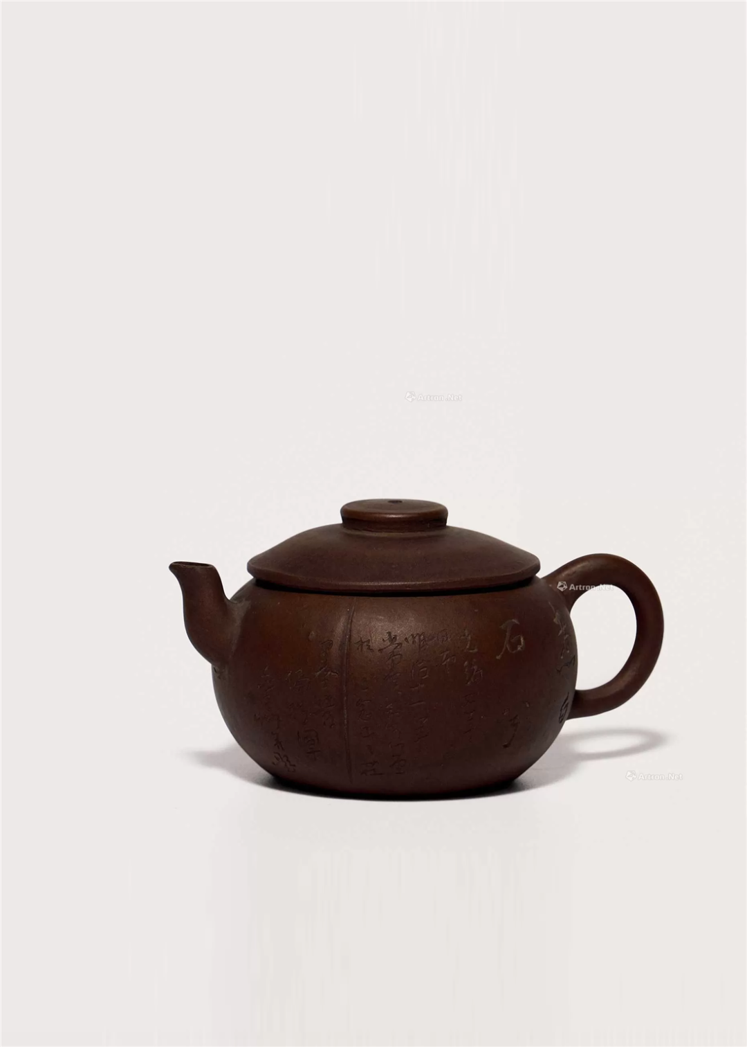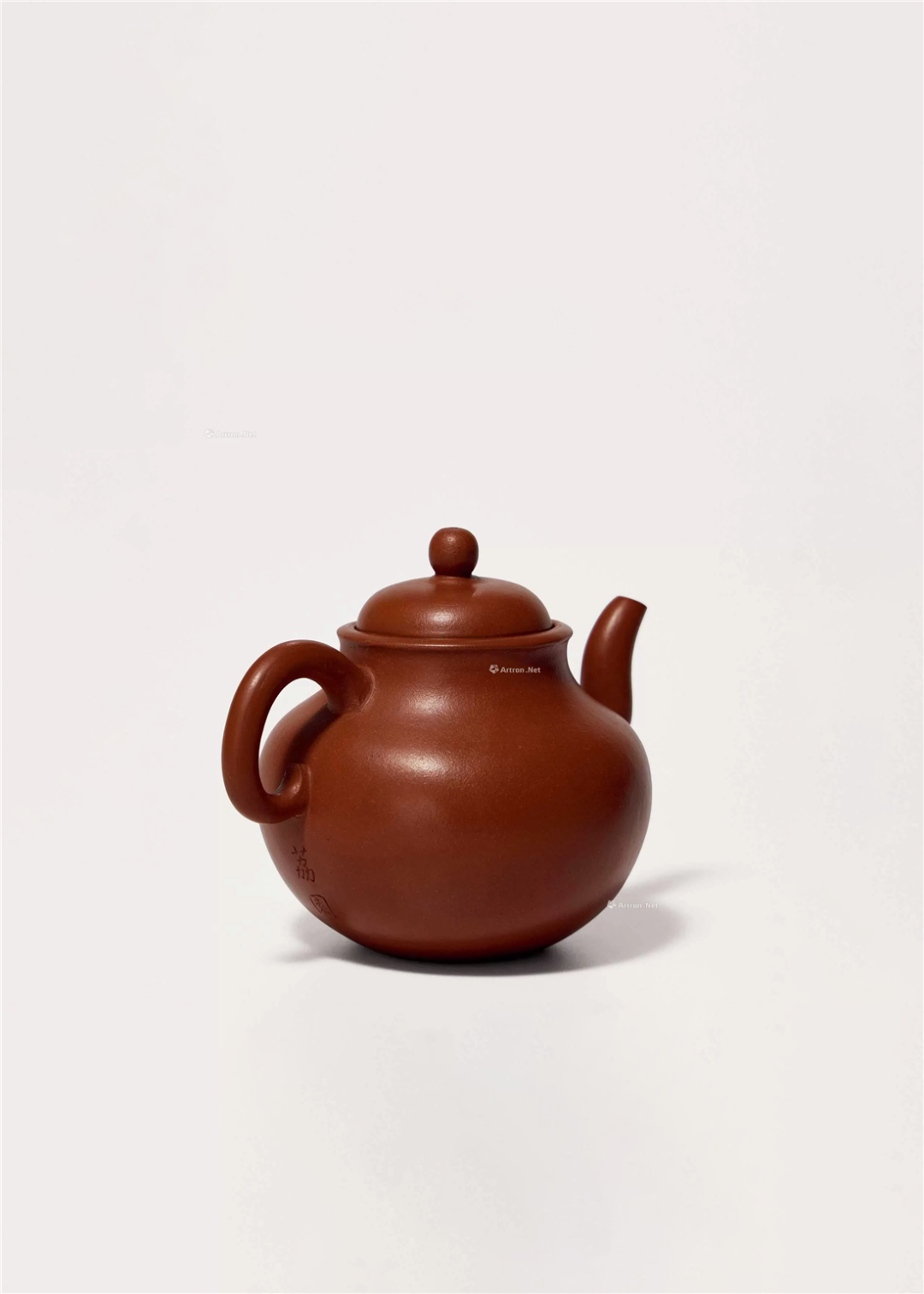 0005 清晚期 寿门诗句款 朱泥具轮珠壶