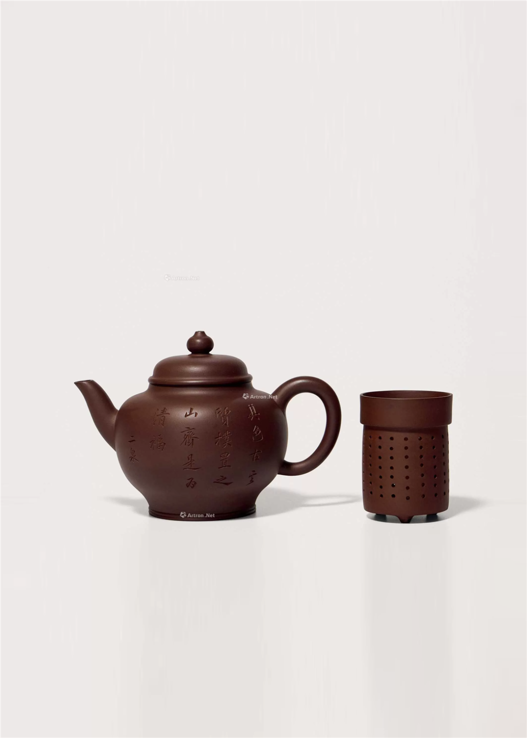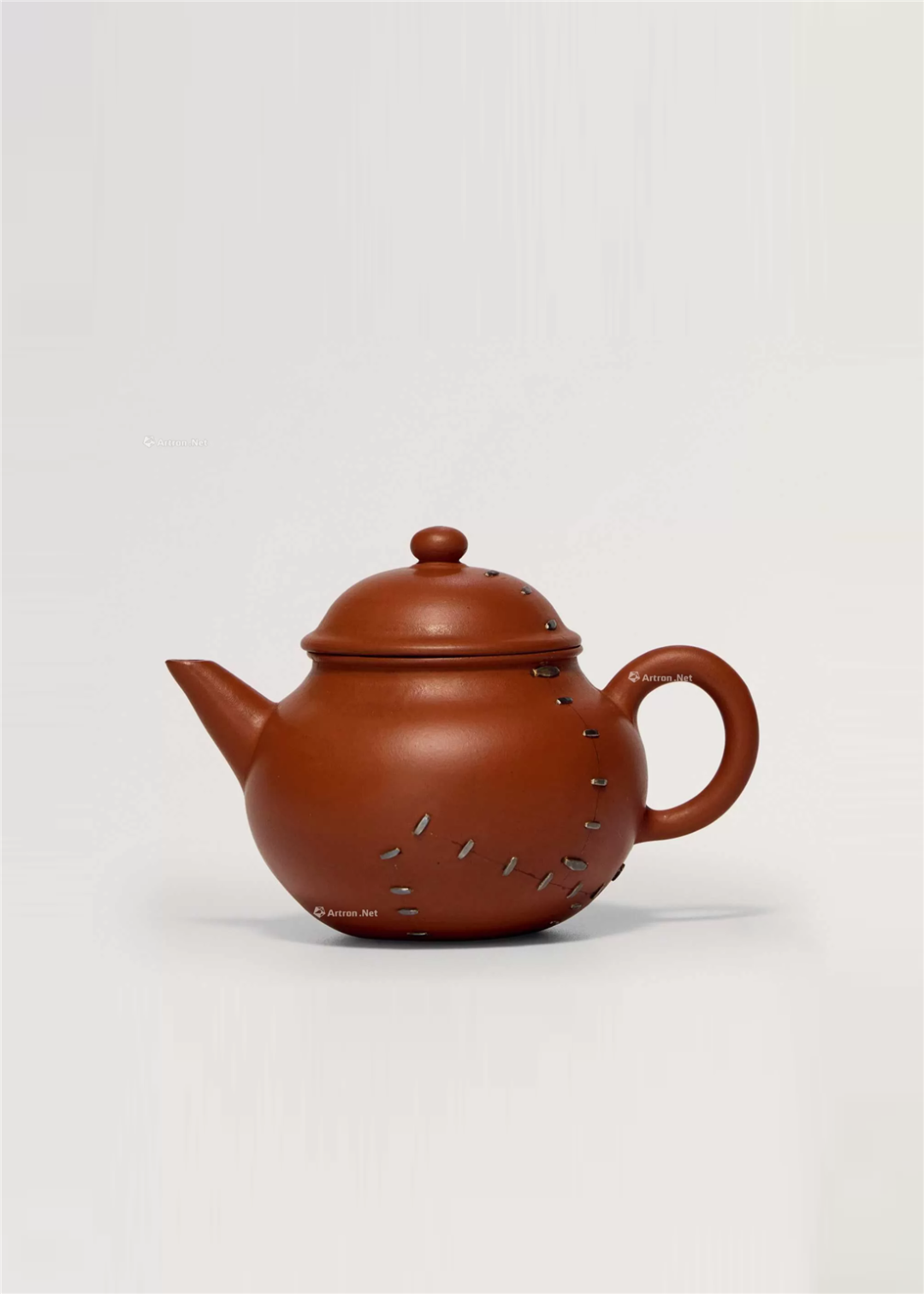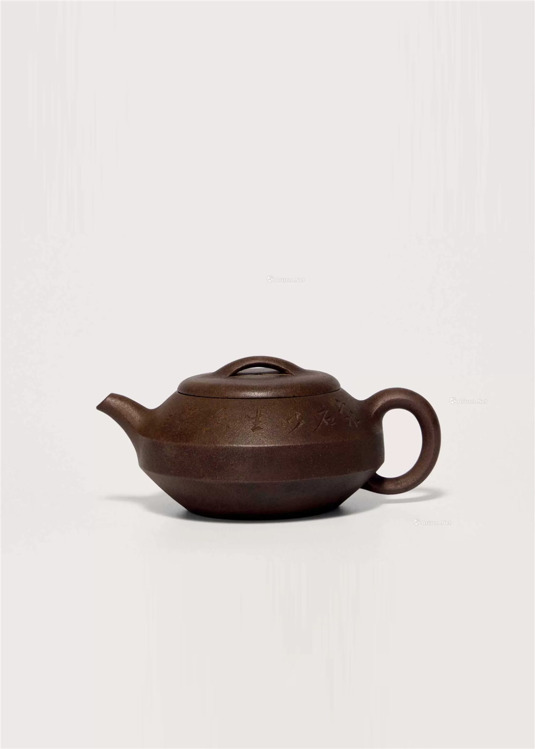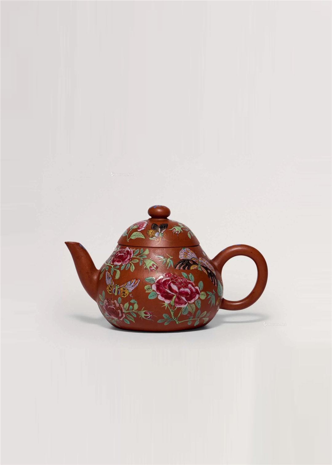 0005 清晚期 寿门诗句款 朱泥具轮珠壶