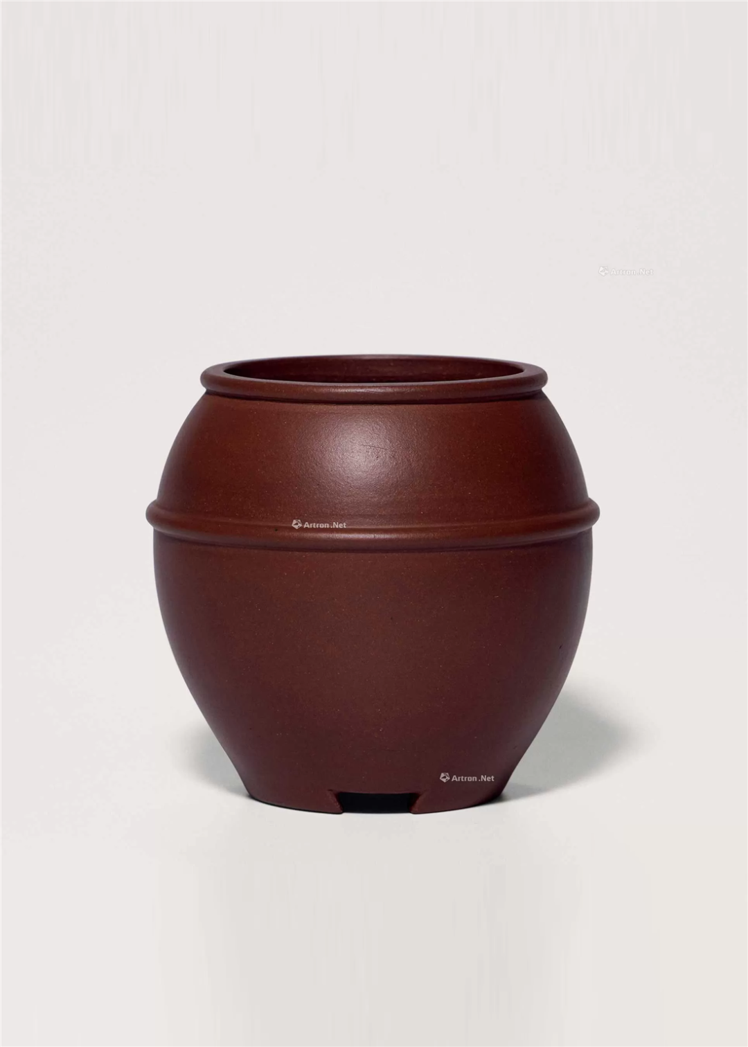 0024 民国 宜兴祥制款 段泥蒲包束口腰圆盆