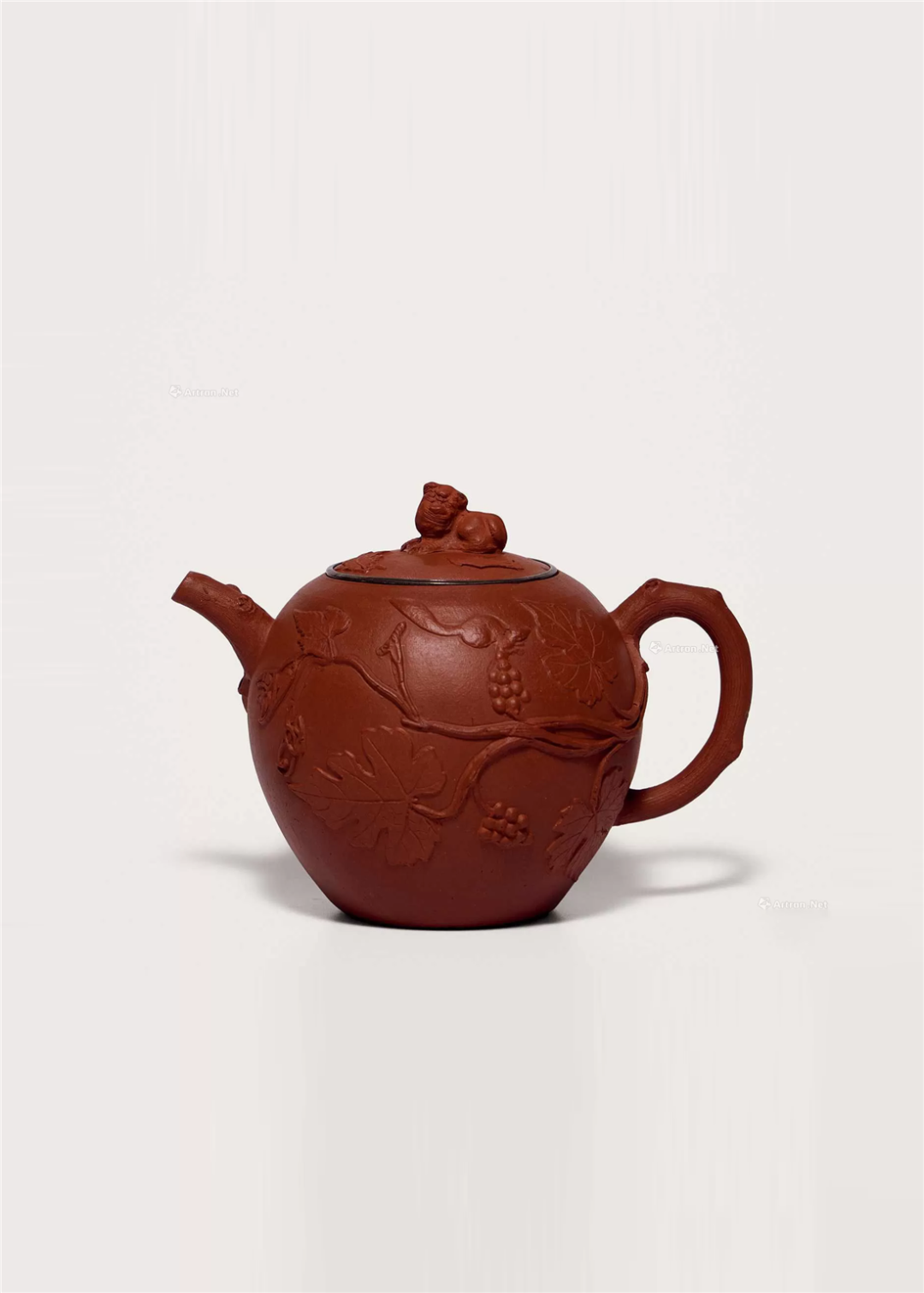 0120 清早期 松鼠葡萄 贴花朱砂壶