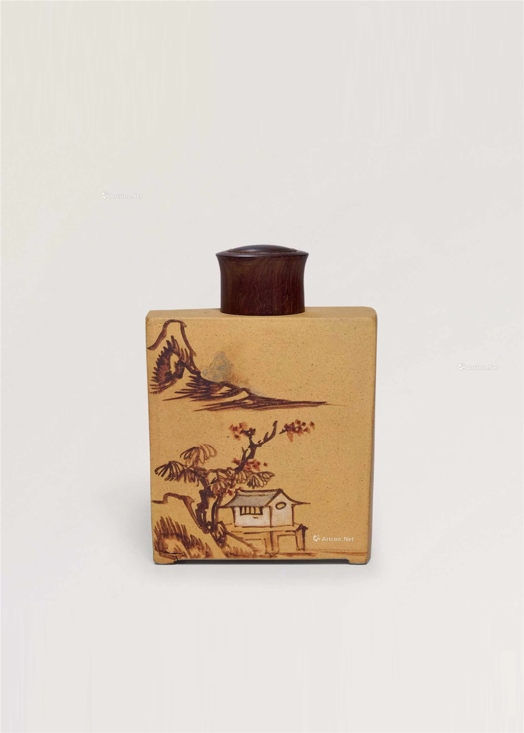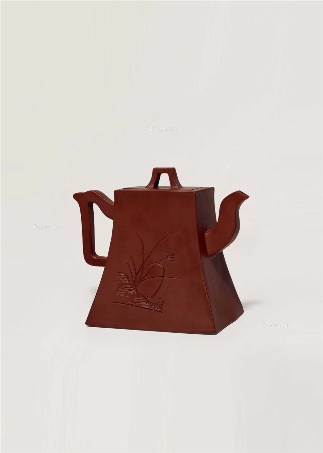 0123 清中期 孟臣诗句款 朱泥方柮壶