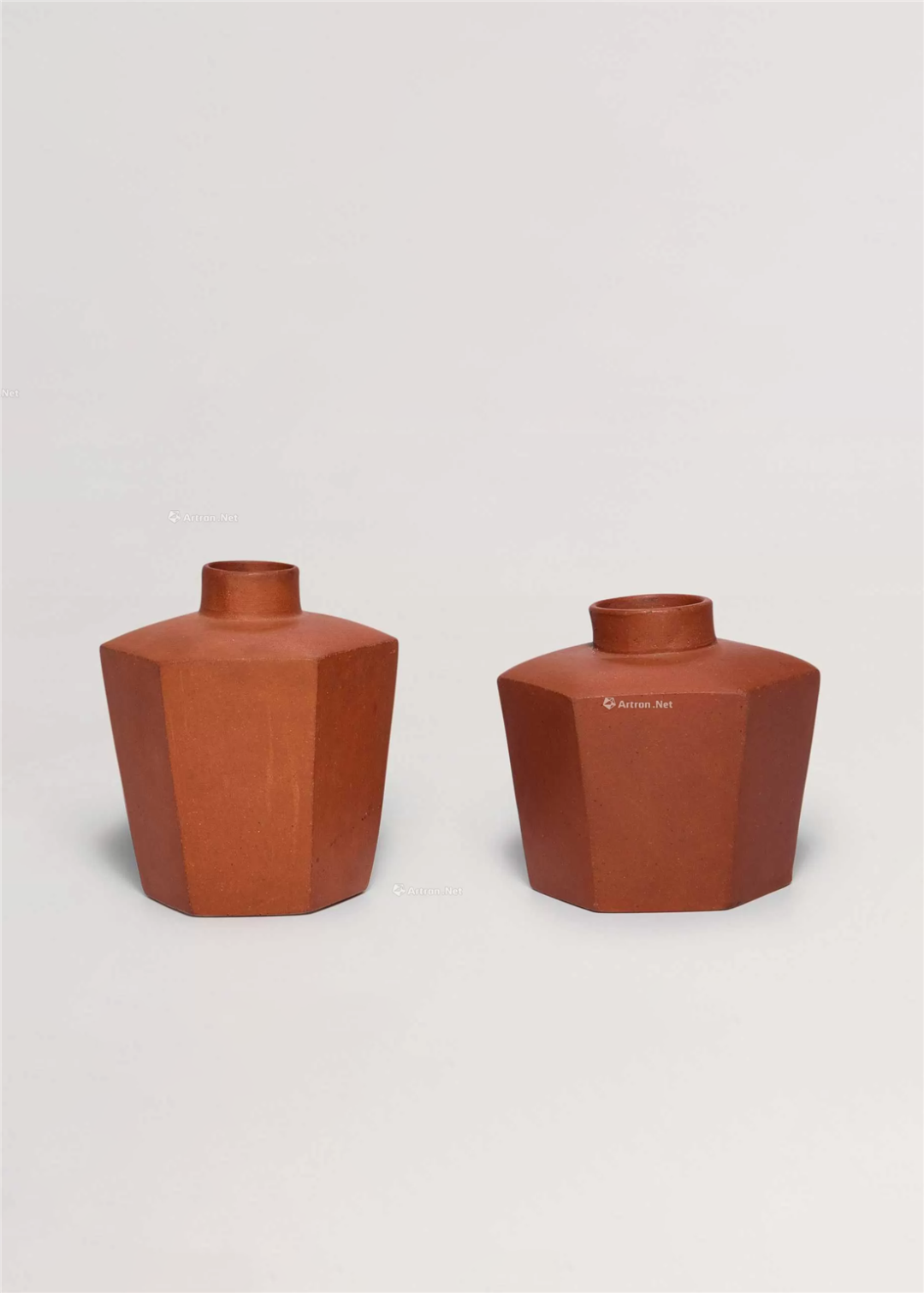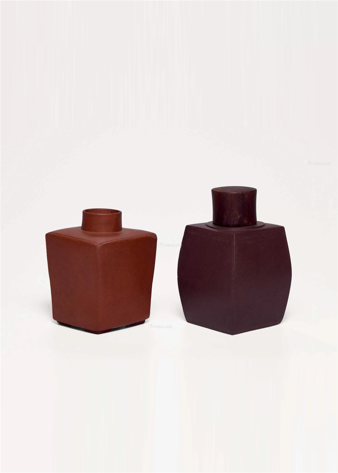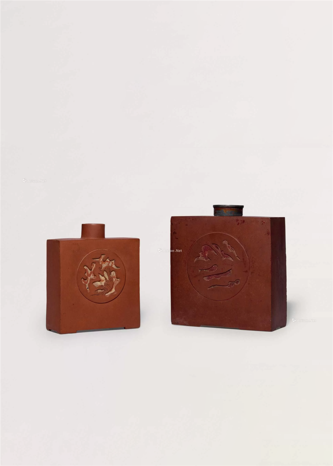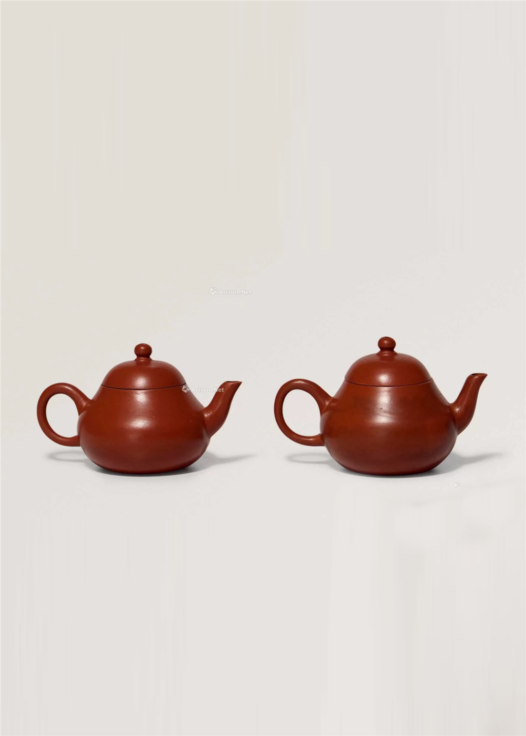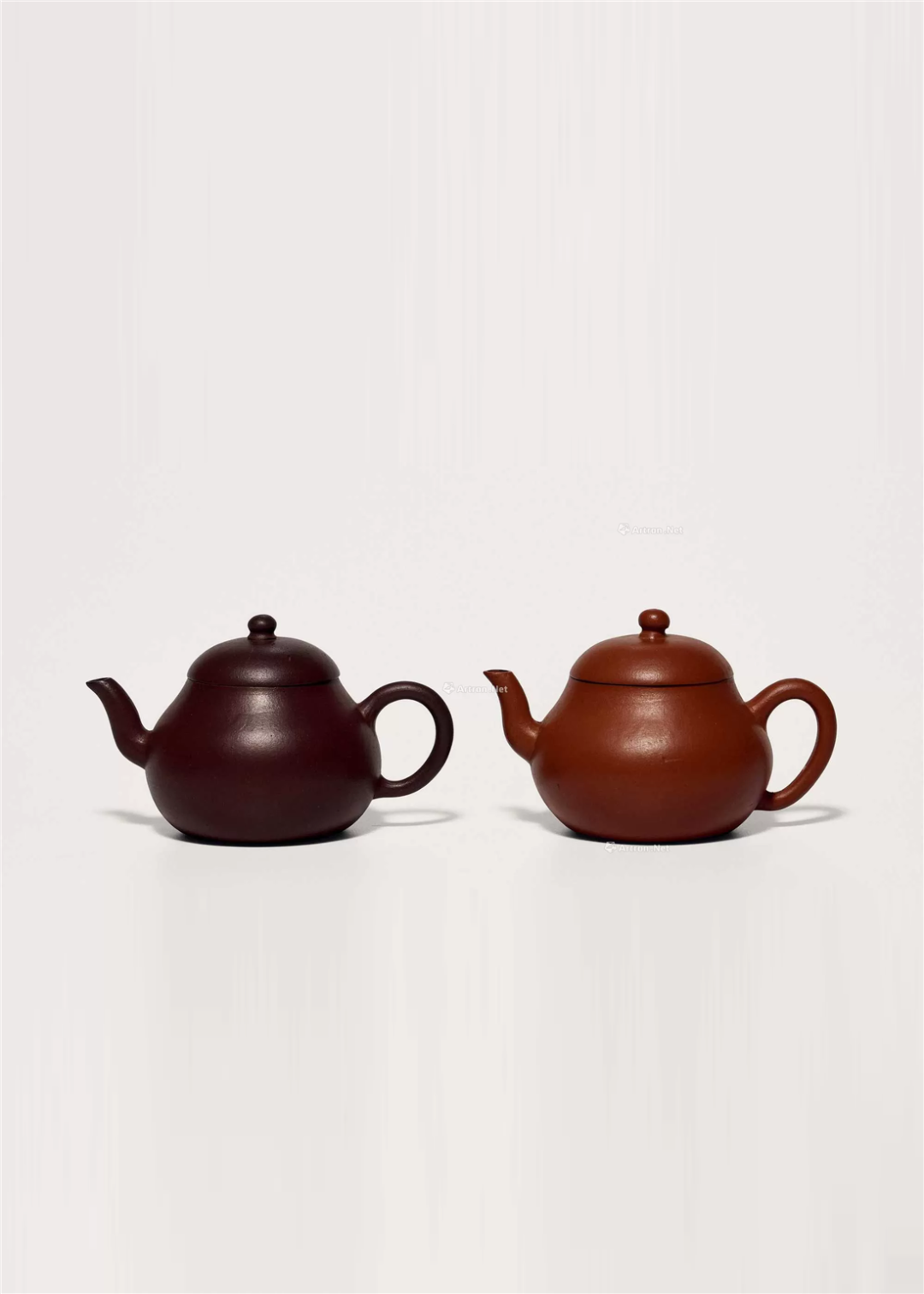 0009 清晚期 怀德儒珍款 潮汕朱泥梨形壶 (一对)
