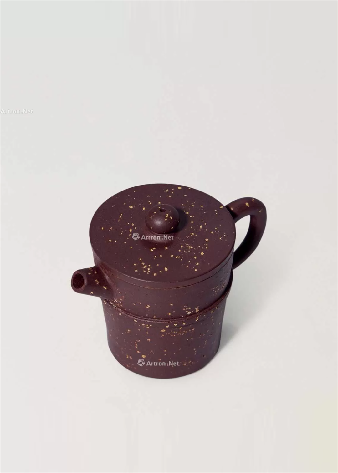 0039 当代 鲍庭博制 黑泥洒金圣鼓壶