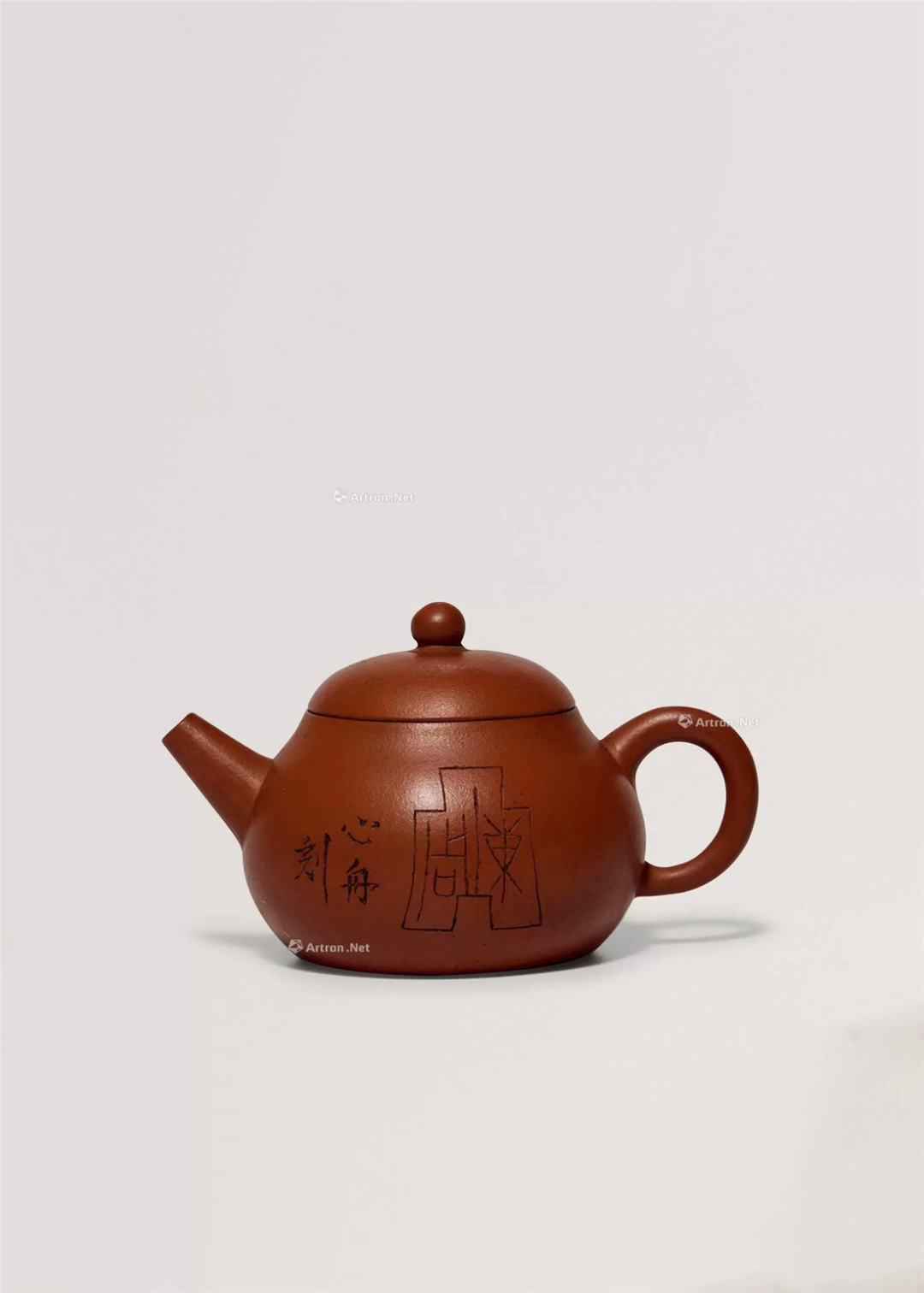 0064 清晚期 昌记 孟臣诗句 朱泥瓮形壶