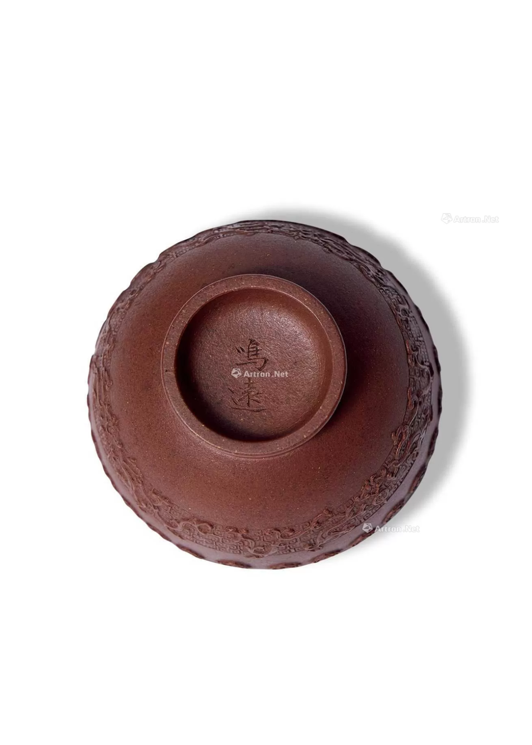 0074 清中期 明月三人太白杯 朱泥小文旦