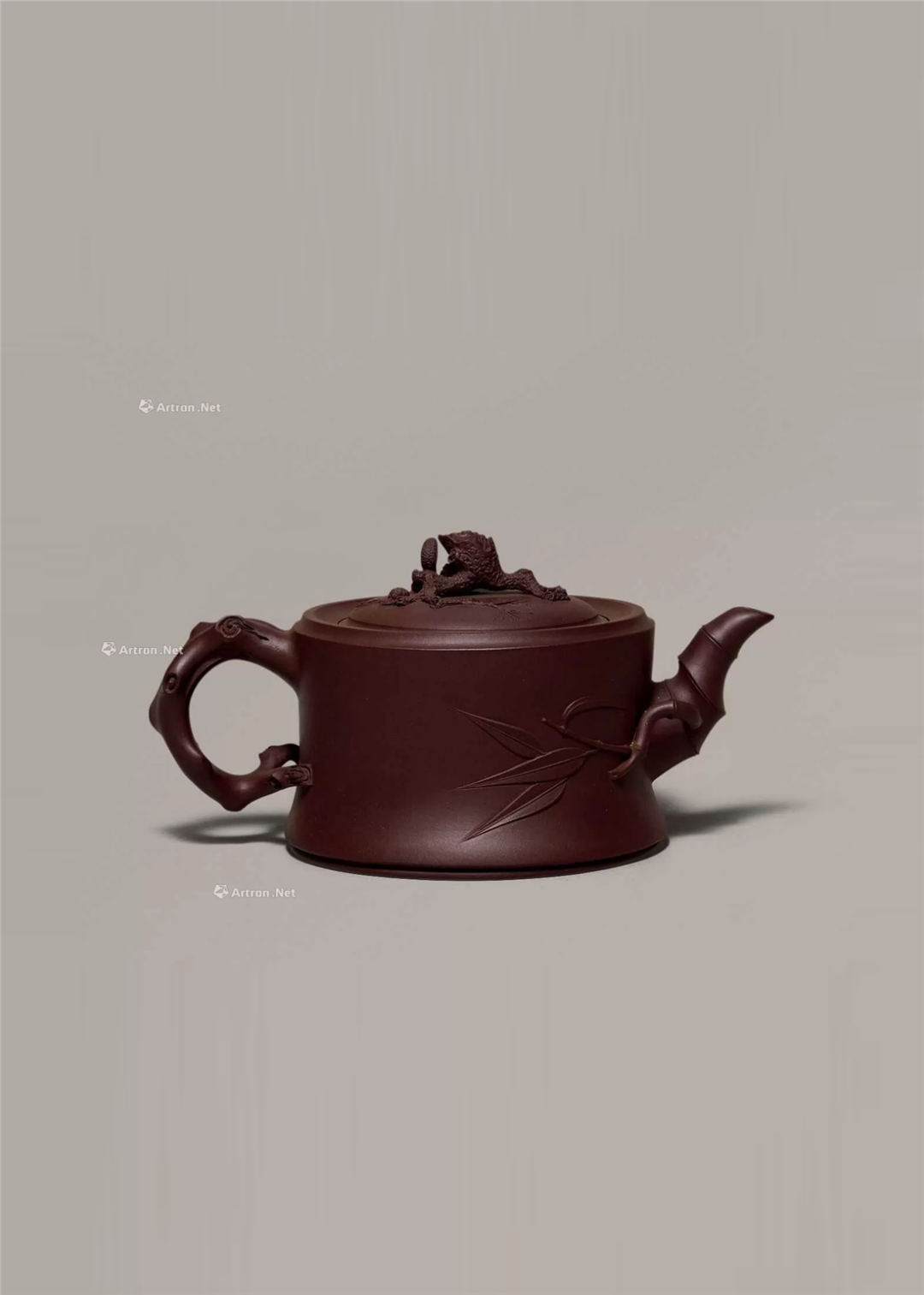 0141 当代 鲍月兔制 松鼠逸趣壶