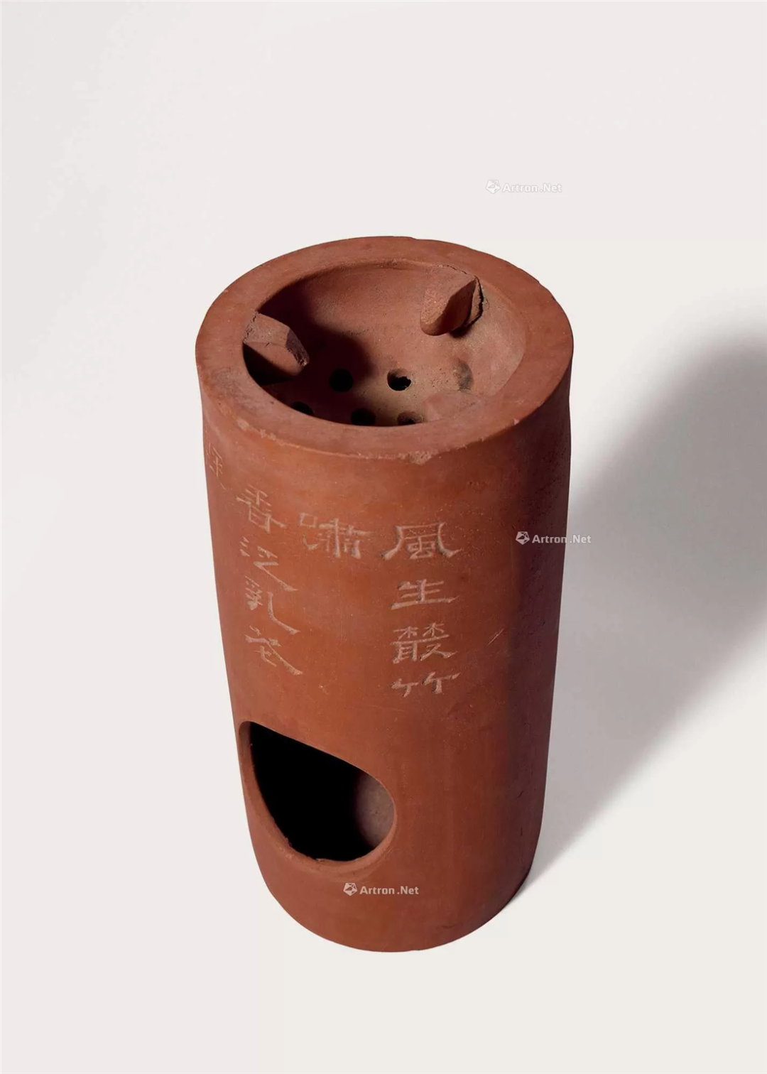 0177 清乾隆 大彬诗句款 紫泥扁灯