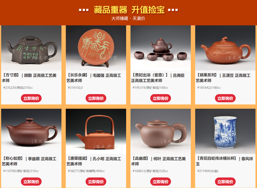 合作伙伴:中国紫砂协会 江苏省陶瓷行业协会 宜兴紫砂壶艺术研究所艺术顾问:顾绍培 吕尧臣 毛国强 季益顺 徐安碧 徐汉棠 吕俊杰 李昌鸿 徐秀棠 潘持平 何道洪 周桂珍 鲍志强 曹亚麟 吴鸣 华健 葛军 陈国良 曹婉芬 法律支持:上海市汇业律师事务所