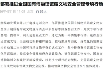 4月1日,国家文物局官方公众号发文称,国家文物局部署推进全国国有博物馆馆藏文物安全管理专项行动。此次专项行动是一项文物领域打基础、固根本、利长远的重点工作。通过为期一年的集中行动,…详情>