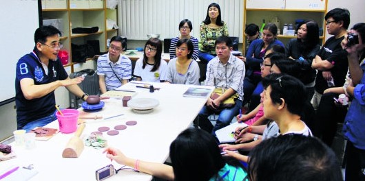 紫砂之家讯:澳门天地陶艺学会上周六、日在佑顺工业大厦五楼天地陶艺中心举行陶艺工作坊,中国宜兴陶艺教授卢剑星主持。卢剑星的创作以茶壶为主,风格独特,善于捕捉生活上接触到的事物,取其形…详情>