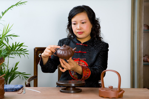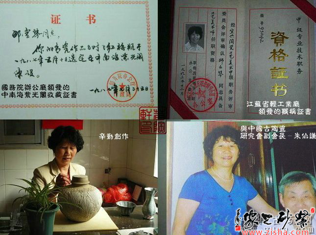 先师承张焕生,肖金娣打下扎实的雕塑,贴花,壁画工底,后又拜其姑父母李昌鸿、沈遽华深造制壶技法。