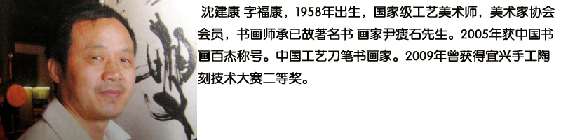 沈建康,字福康,号二龙山人,南师大美术本科学历,喜收藏、精鉴赏,八十年代已与赵冷月、孙伯翔、韩天衡等交往,后又与伊瘦石、沈鹏、陈傅席、刘彦湖、董孝庸、李守银等紫砂陶刻上合作,书法作…详情>