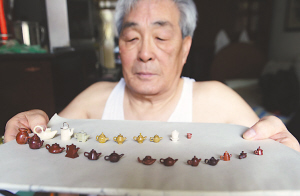 紫砂之家讯:你见过一厘米大小的茶壶吗本市80岁老人赵致祥就擅长制作这样的微型紫砂壶。赵致祥老人从小爱好手工制作,年轻时一次偶然机会让他爱上紫砂壶。1985年后,他开始从事紫砂壶微雕…详情>