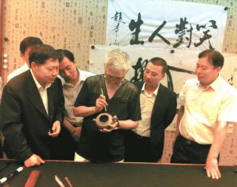 吕尧臣与吕俊杰向航天英雄杨利伟将军赠送神九飞天震五洲,祖国文化誉全球横幅。紫砂之家讯:中华传统紫砂陶艺与当代数码科技结合,将会呈现什么样的风采北京友好传承文化基金会联合中国载人航天…详情>