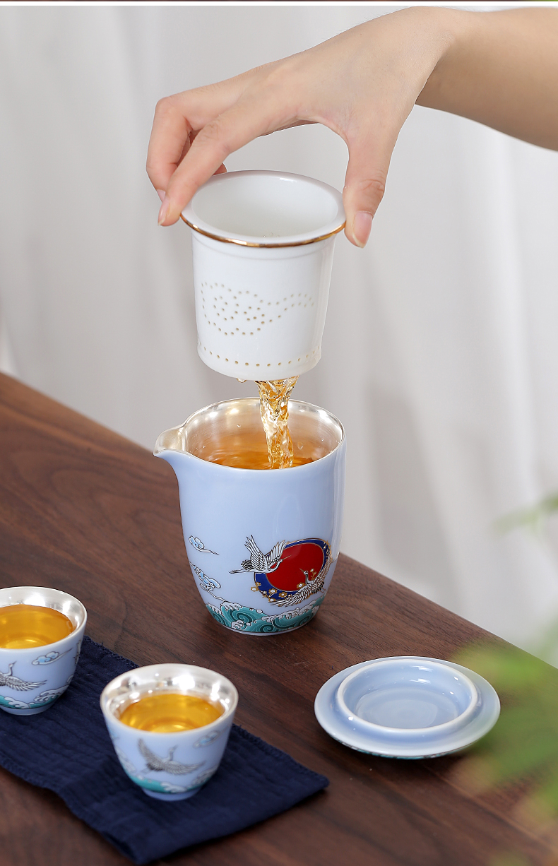 紫砂之家 >> 作品库 >> 作品详情 >> 云中仙鹤旅行套装-天青色
