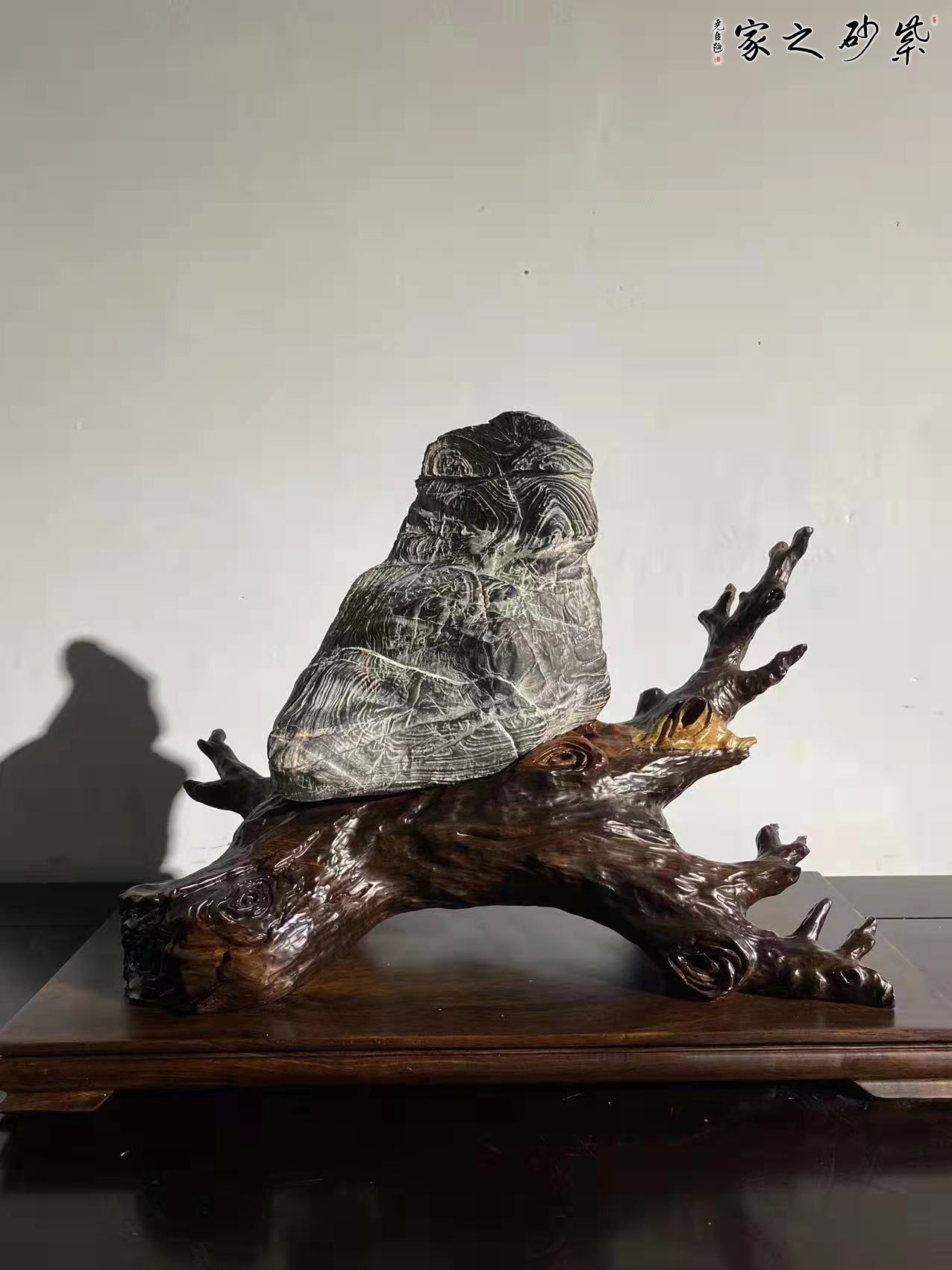 灵璧石原石,白马纹石,似鸟,寓意报春,喜上眉梢,白马纹石产量稀少,石质上乘,皮色黑亮,清冽,纹理灵动流畅